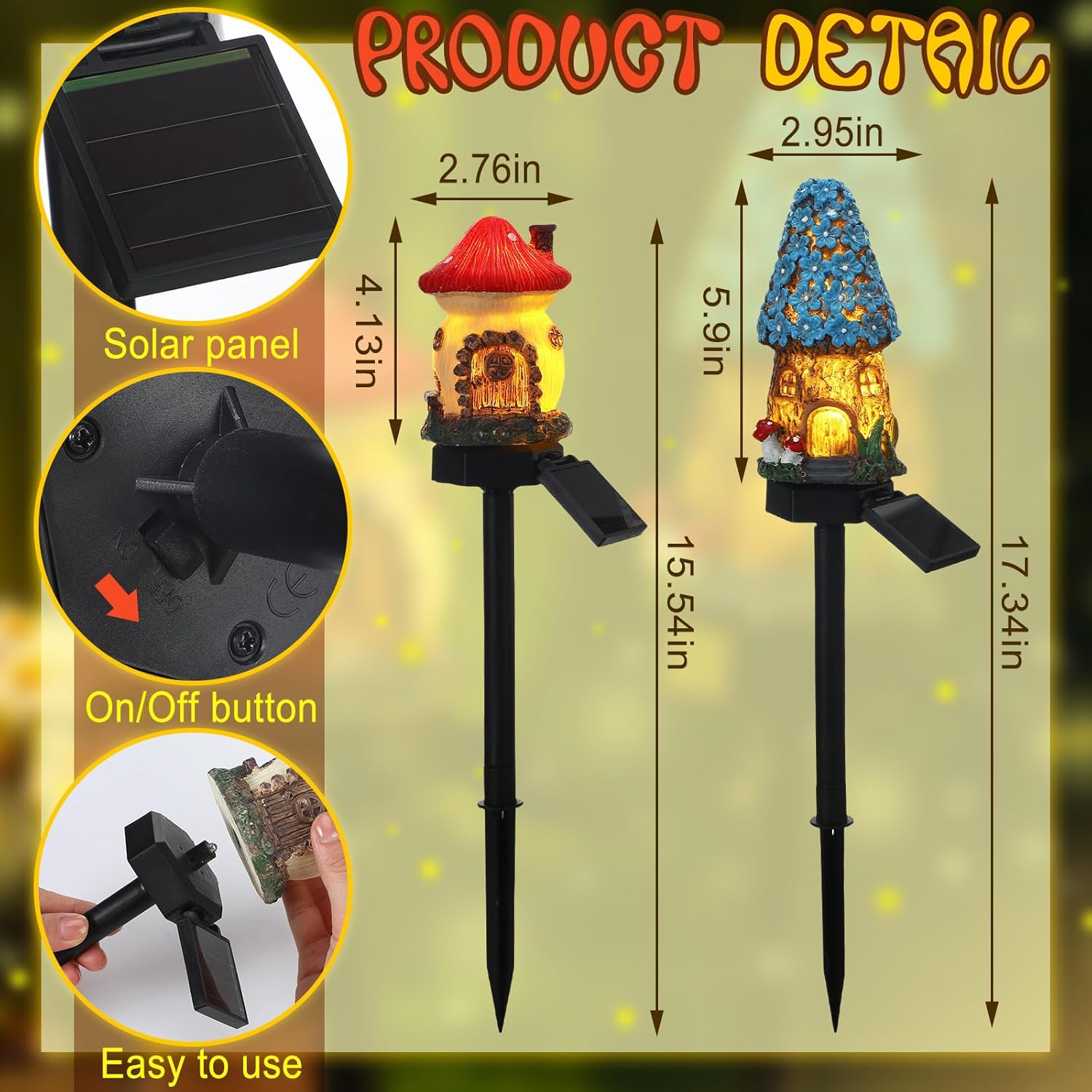2 Pack Outdoor Garden Mushroom Fairy House Solar Light Home Statue LED Light Fairy Lights for Outside Garden Lawn Walkway Patio Yard Backyard Plant Decoration