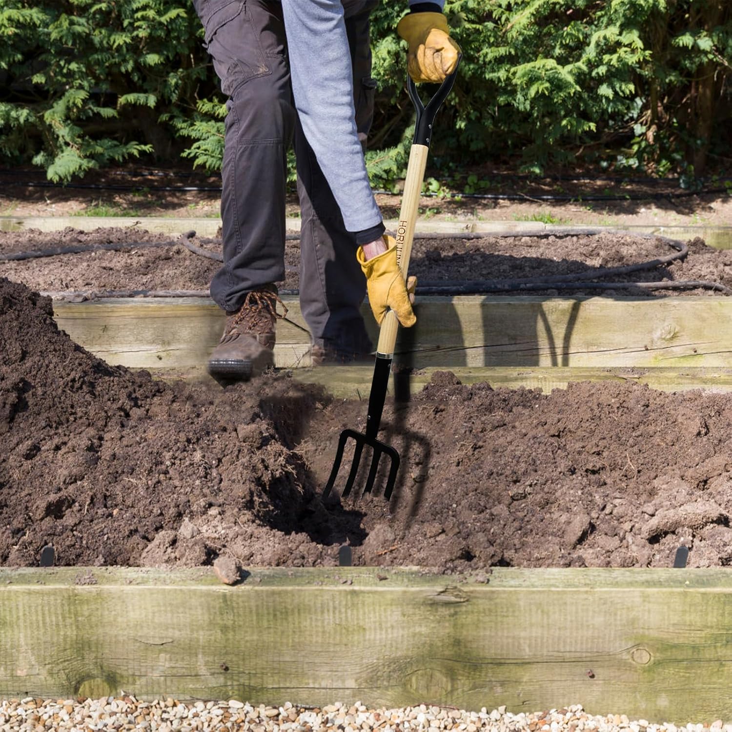 - Garden Fork: Garden Fork Head Adopt Forging Process Form In One Body To Make for High-Strength Manganese Steel It More Durable And Not Easy To Bend When Digging Hard.