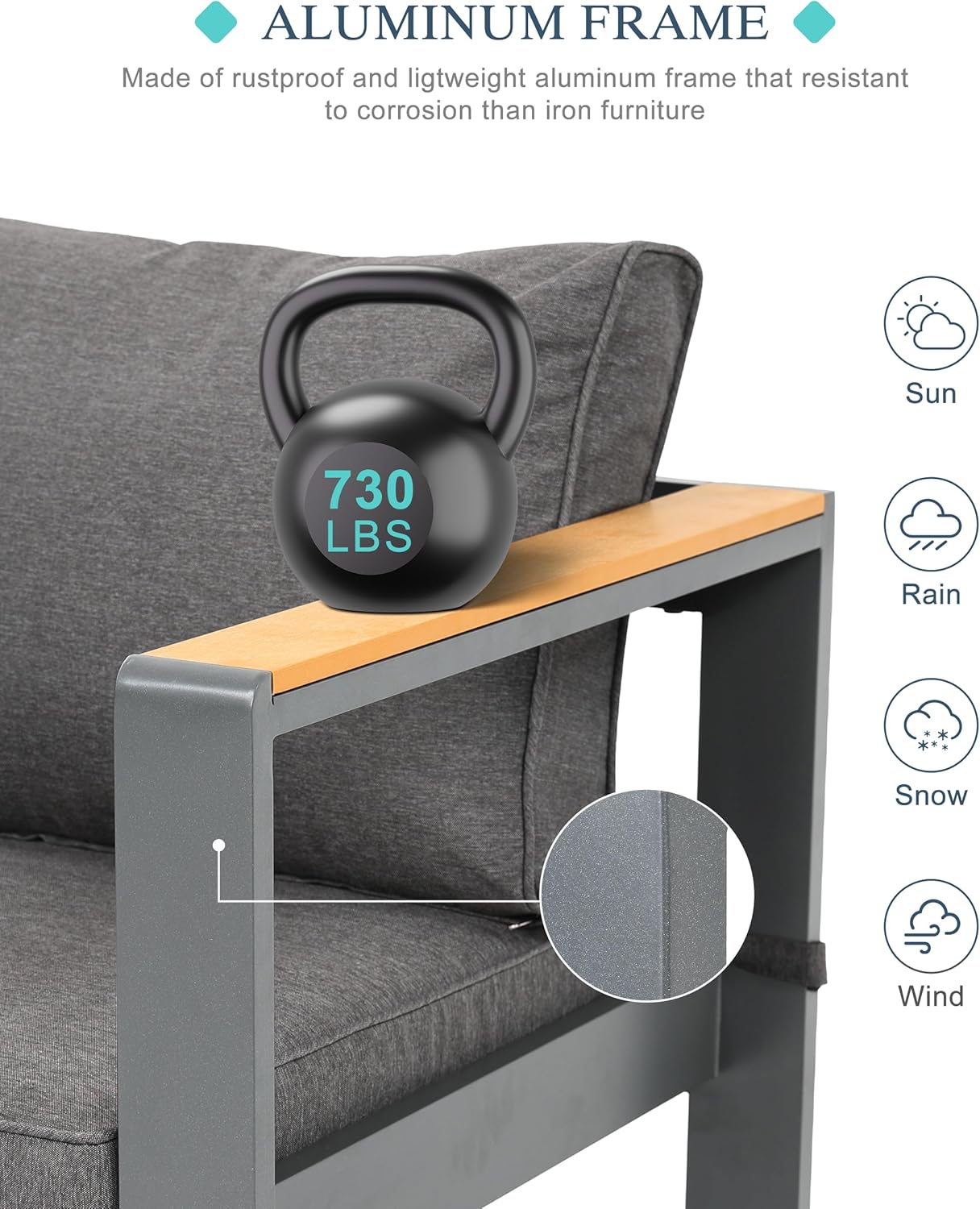 - Effortless Maintenance: Engineered with rust, heat, and moisture-resistant aluminum and a protective finish, this patio 3-seat sofa requires only a quick wipe with a damp cloth—freeing your time for relaxation, not upkeep