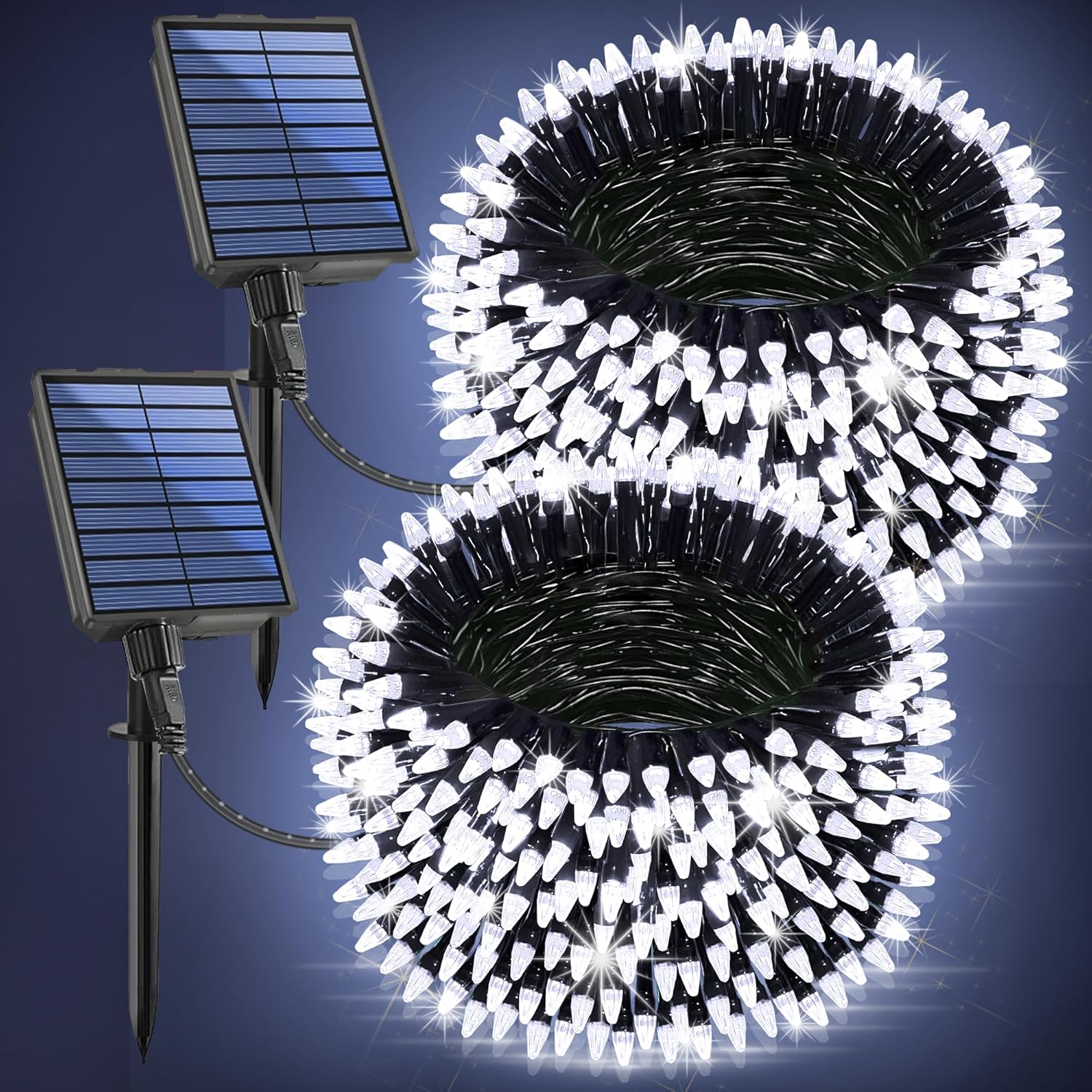 - Super-Long Dark Green Wire Solar String Lights : ( 2-Pack Total 200FT, Each String is 100FT ) Solar Lights Outdoor String with 600 Upgraded LED Bulbs. 19 Lighting Modes & Timer & Memory Function & Auto On/Off.