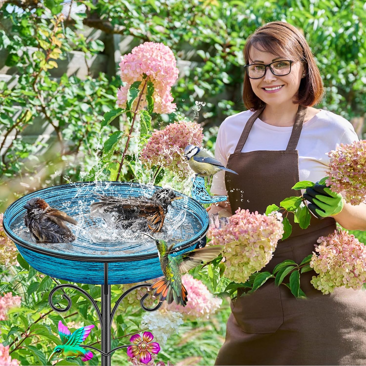 - 【Bird Bath Bowl】This bird bath is ideal for attracting all types wild birds. Your mounted bird bath will help you feel closer to nature, Very suitable for wild birds and hummingbirds to drink and bathe, Colorful hummingbirds and sunflower decorations make the bird bathtub more ornamental.