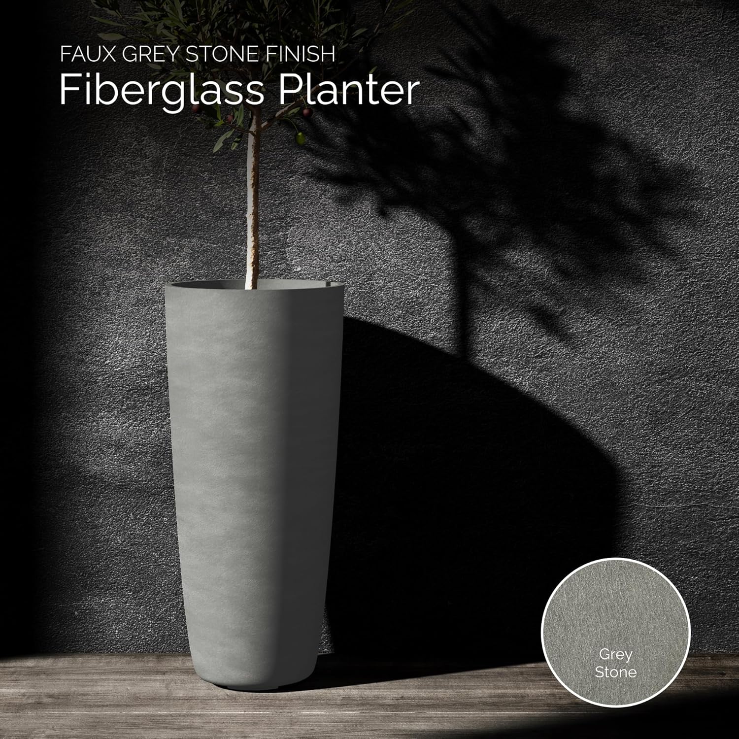 Lofto Tall Planter – Grey Stone Finish – Fiberglass Indoor/Outdoor and Weather-Resistant Large Planter (19.7" D x 43.7" H Exterior, 18.5" D x 43.3" H Interior)