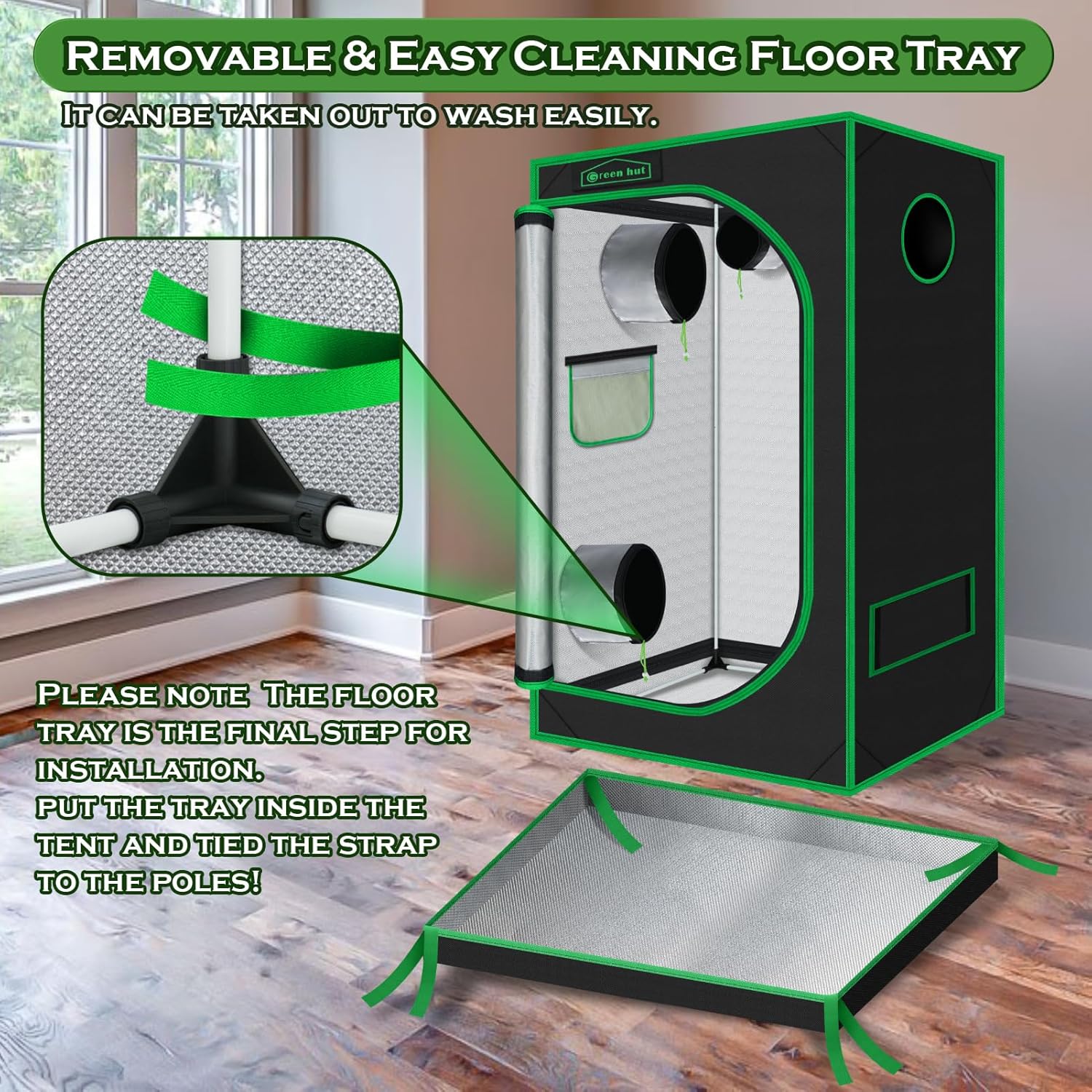 - HIGHLY REFLECTIVE --- The grow tent includes a removable Mylar floor tray, and a 100% light-proof, tear-proof reflective Mylar lining to assist your indoor growing light fixtures and equipment. Increase the intensity of your grow lights and retain heat to keep your grow room at the right temperature for your plants, herbs, flowers, fruits, and vegetables to thrive