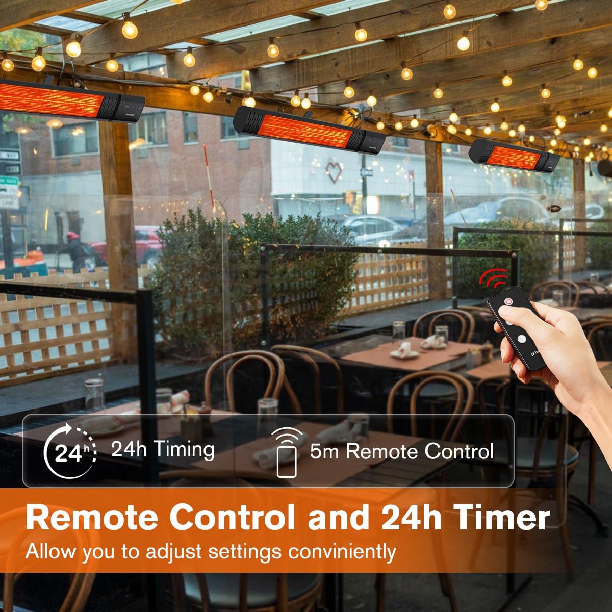 - IP65 Rated Waterproof & Dust-proof - best work with 2-3 heaters for various outdoor environments, ideal for outdoor patio, porch, decks, home, backyard, garages, open-air outside restaurants, shops and offices