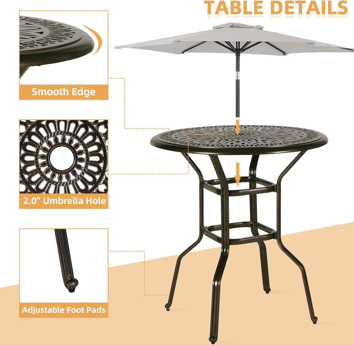 - 【Premium Materials】The outdoor swivel bar stools set is made from cast aluminum for long-term durability. Resistant to rust, weather, fade, crack. The patio furniture set features an oil-rubbed bronze finish for a timeless look that is designed to withstand the elements year-round. If you use this set by the pool, it’s all-weather quality helps prevent water damage caused by wet swimsuits and splashing. It is also easy to clean, you just need to use a cloth to easily wipe away the dirty things.