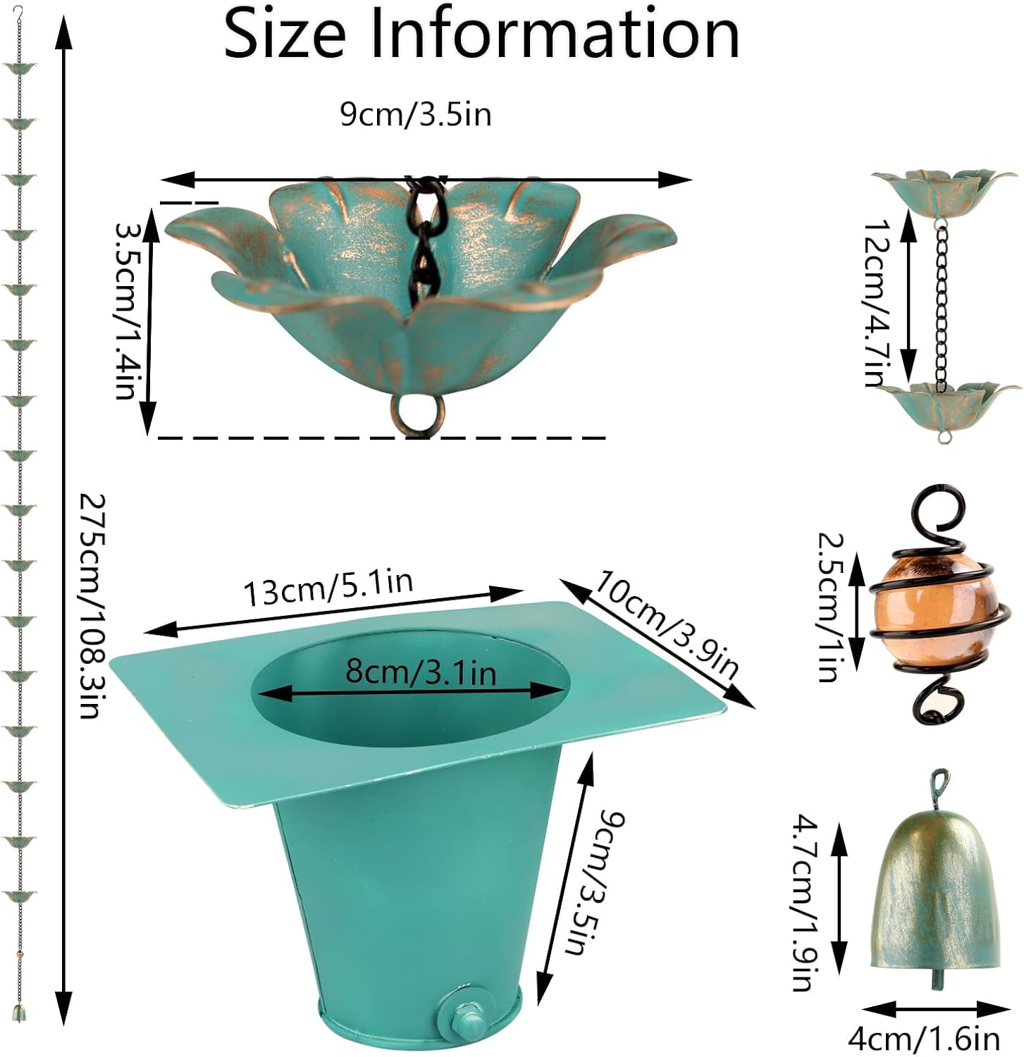 - High Quality Material:The rain chain is made of durable iron material to ensure stability and durability in all weather conditions. Whether it's direct sunlight or rain, this rain chain will stand up to the elements and will not fade or break over time.