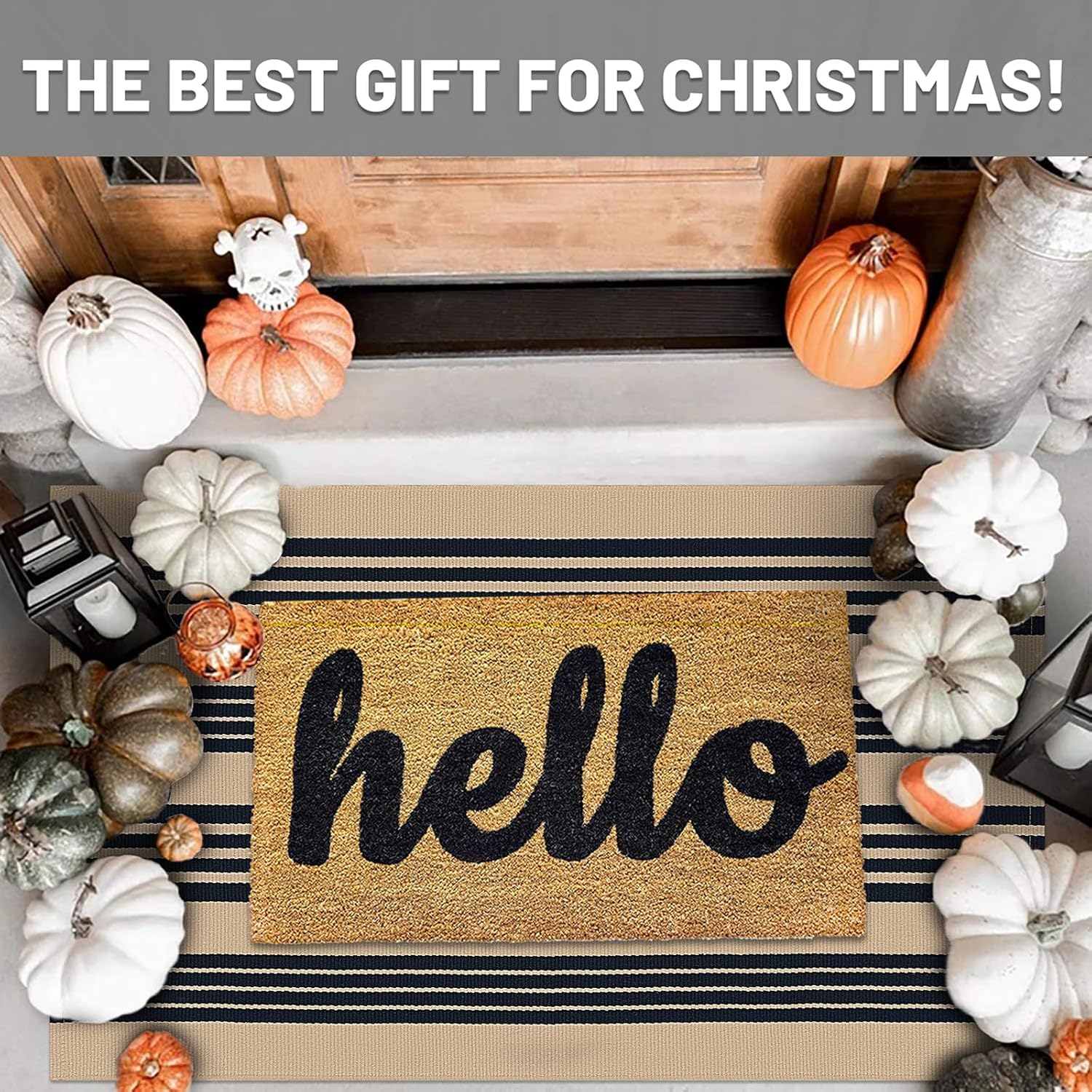 - Classic Pattern Design: Enhance your home decor with this striped indoor outdoor rug. The chic design is ideal for decorating your front porch, entryway, or living room. It also makes a thoughtful gift for Christmas, Halloween, or Thanksgiving