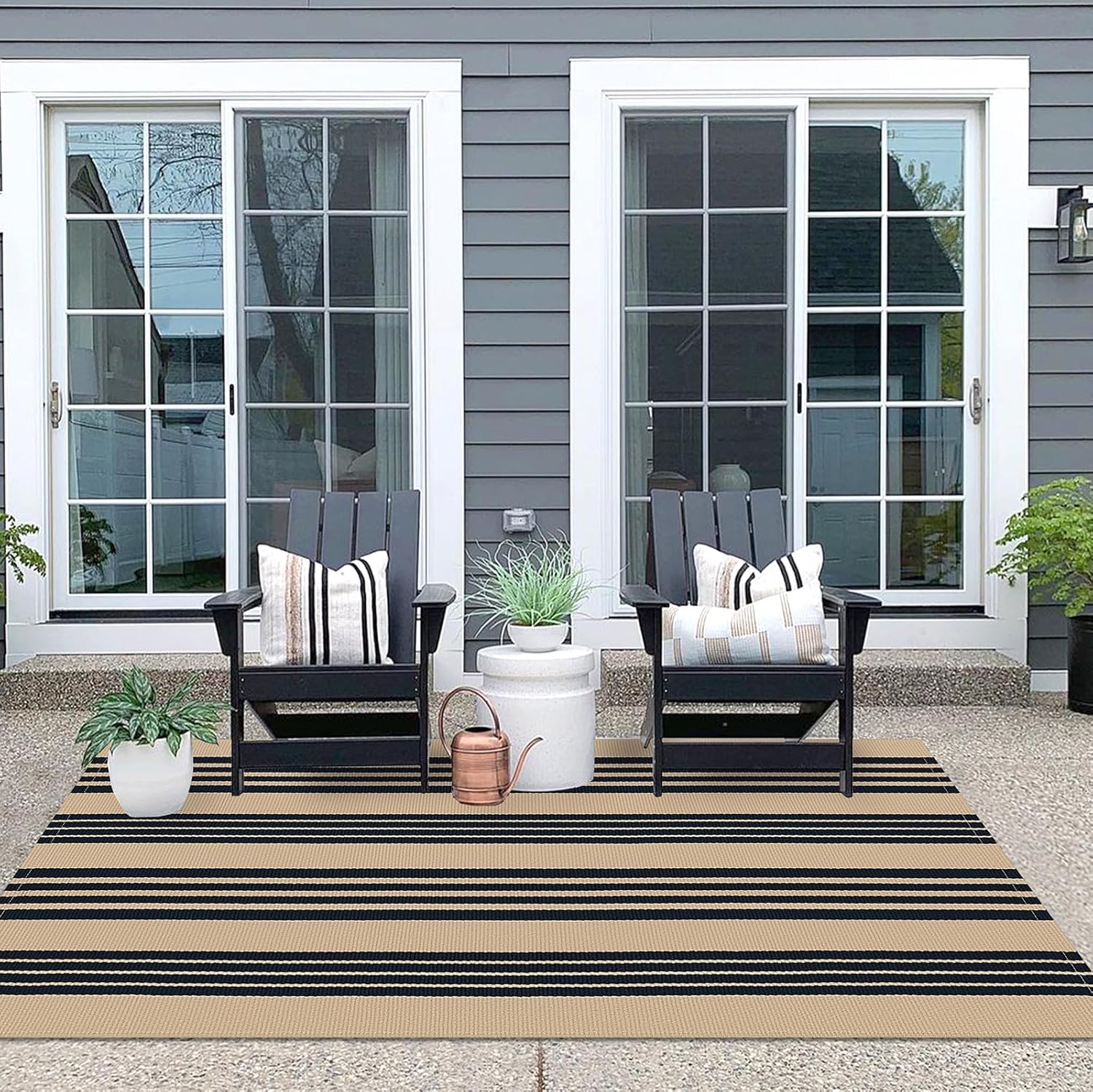 IOHOUZE Black and Tan Striped Rug 4'x6' Front Door Rugs Outdoor, Washable Area Rug for Double Front Porch, Large Patio Rug Outdoor Indoor, Doormat for Entryway Porch Entrance