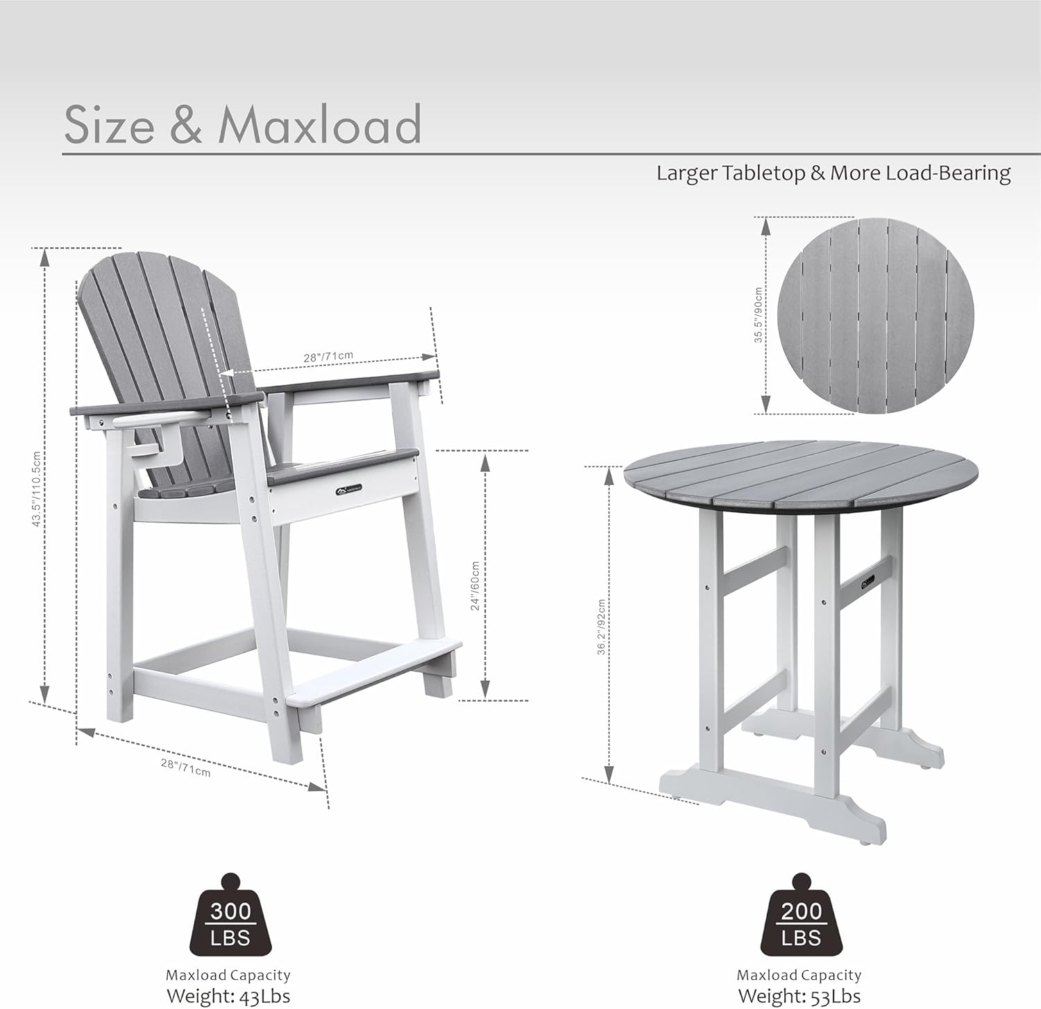 Tall Adirondack Chairs Patio Bar Tables Set of 5 Weather Resistant HDPE 35" Round Outdoor Bar Adirondack Barstools Plastic Height Table Pub, for Garden, Backyard, Yard, Pool, Fire, Pit (Grey)