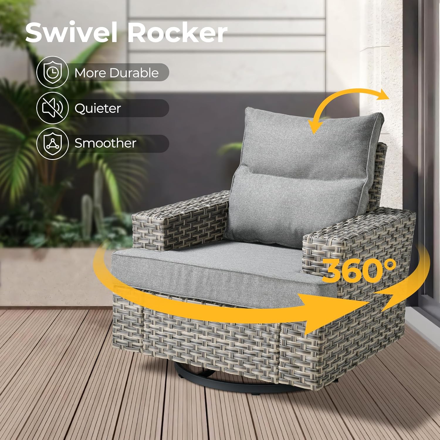 - Swivel Rockers: Designed for both 360° swivel and front to back rocking.Selected thicken and stable mechanism for smoother and quieter rotation as well as safer glider rocking