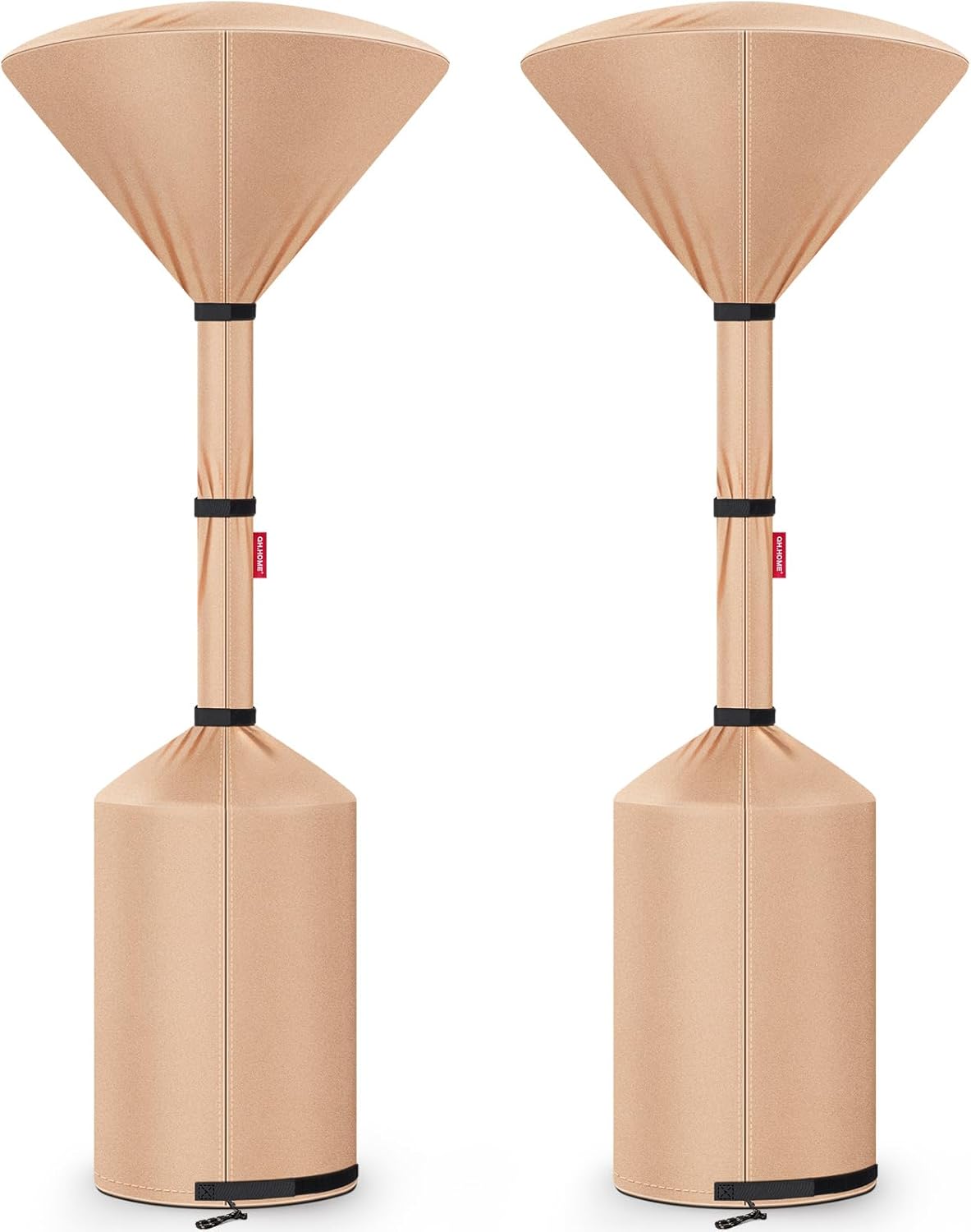 QH.HOME Winter Patio Heater Covers, [2025 Upgraded Tear-Resistant Fabric] Waterproof with Robust Zipper ,Height fit 87"-92",Dustproof/Wind/Sunlight/Snow-Resistant, 2 Pack-Camel