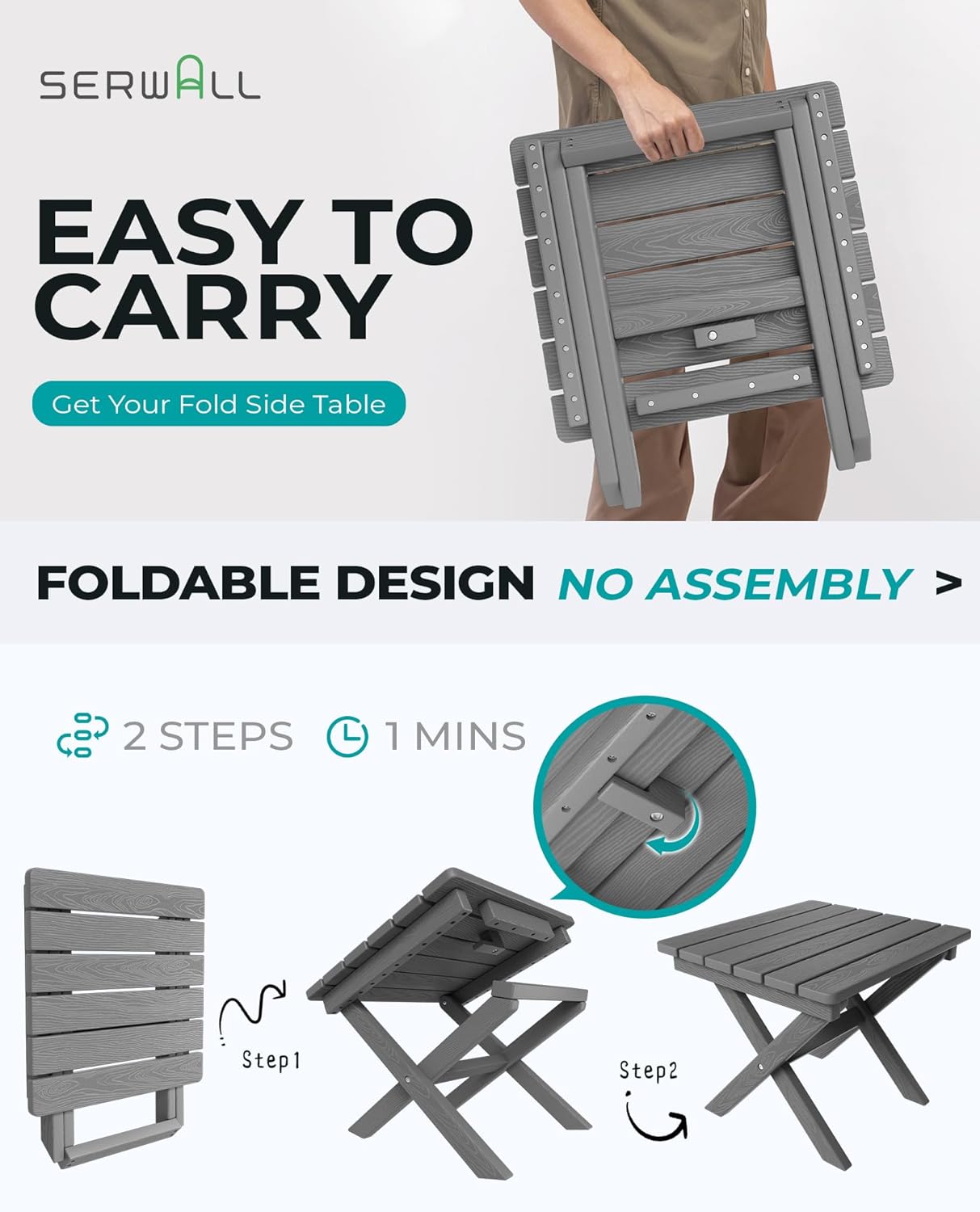 - [Ready-to-Use Convenience] Unbox your SERWALL Adirondack Side Table and enjoy immediate functionality. This folding end table is designed for hassle-free setup, perfect for those seeking a no-assembly-required experience.