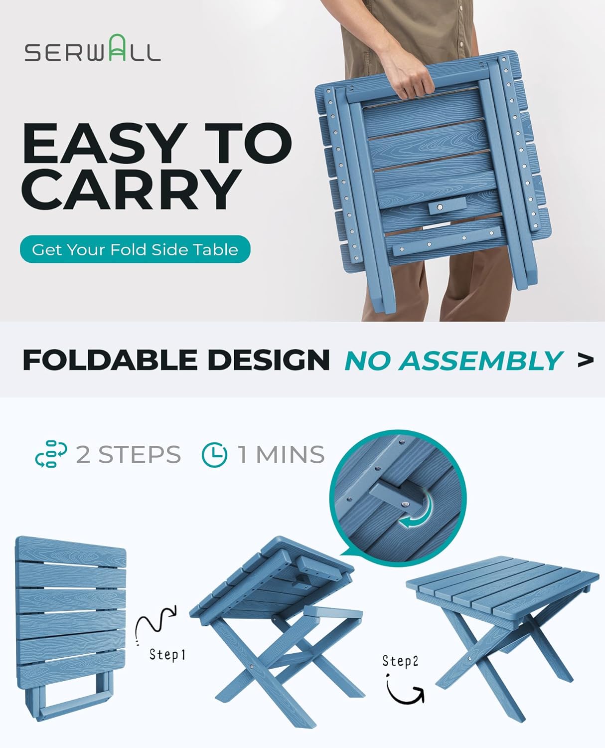 - [Ready-to-Use Convenience] Unbox your SERWALL Adirondack Side Table and enjoy immediate functionality. This folding end table is designed for hassle-free setup, perfect for those seeking a no-assembly-required experience.