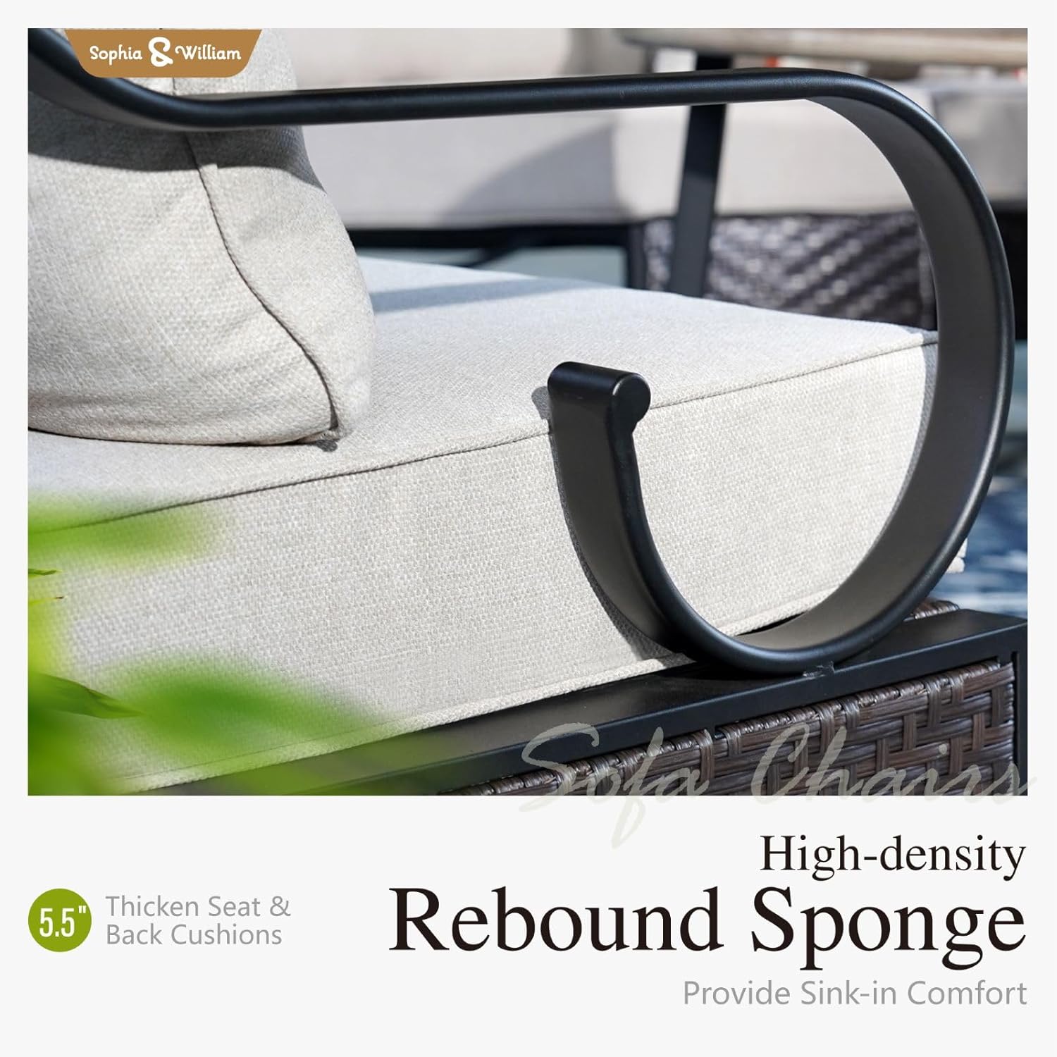 - All-weather Resistant: Enhance your outdoor living space with the Sophia & William modern patio furniture set . Built to withstand all weather conditions, this outdoor furniture boasts a thicken steel frame with E-coating for excellent rust-proof ability and long-lasting durability. Durable steel tube adds stability and weight capacity up to 350 lbs(single sofa chairs), ensuring a luxurious outdoor experience for you and your guests