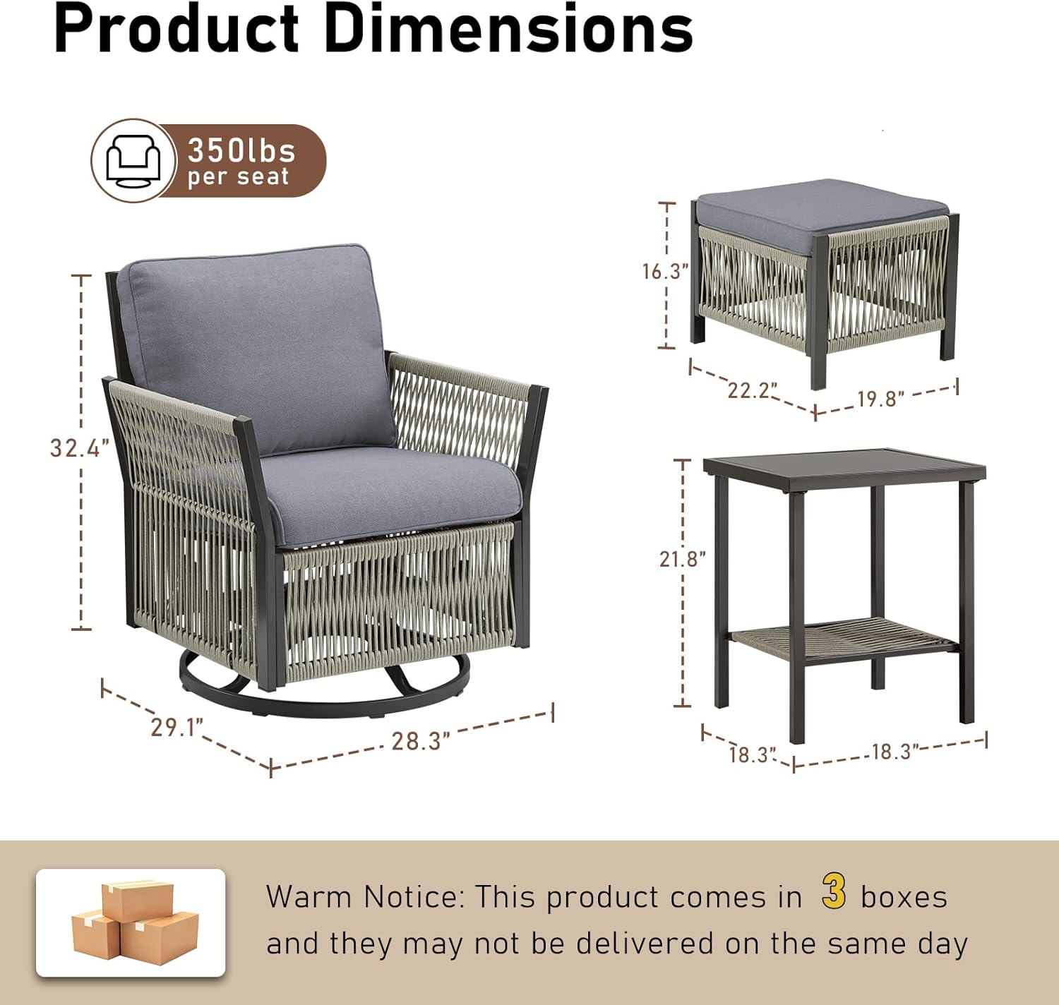 Patio Furniture Wicker Outdoor Conversation Set, 5-Piece All Weather Patio Furniture Rattan Rocking Sets w/Removable Cushions & Ottomans, Side Table for Backyard, Balcony, Deck, Dark Grey