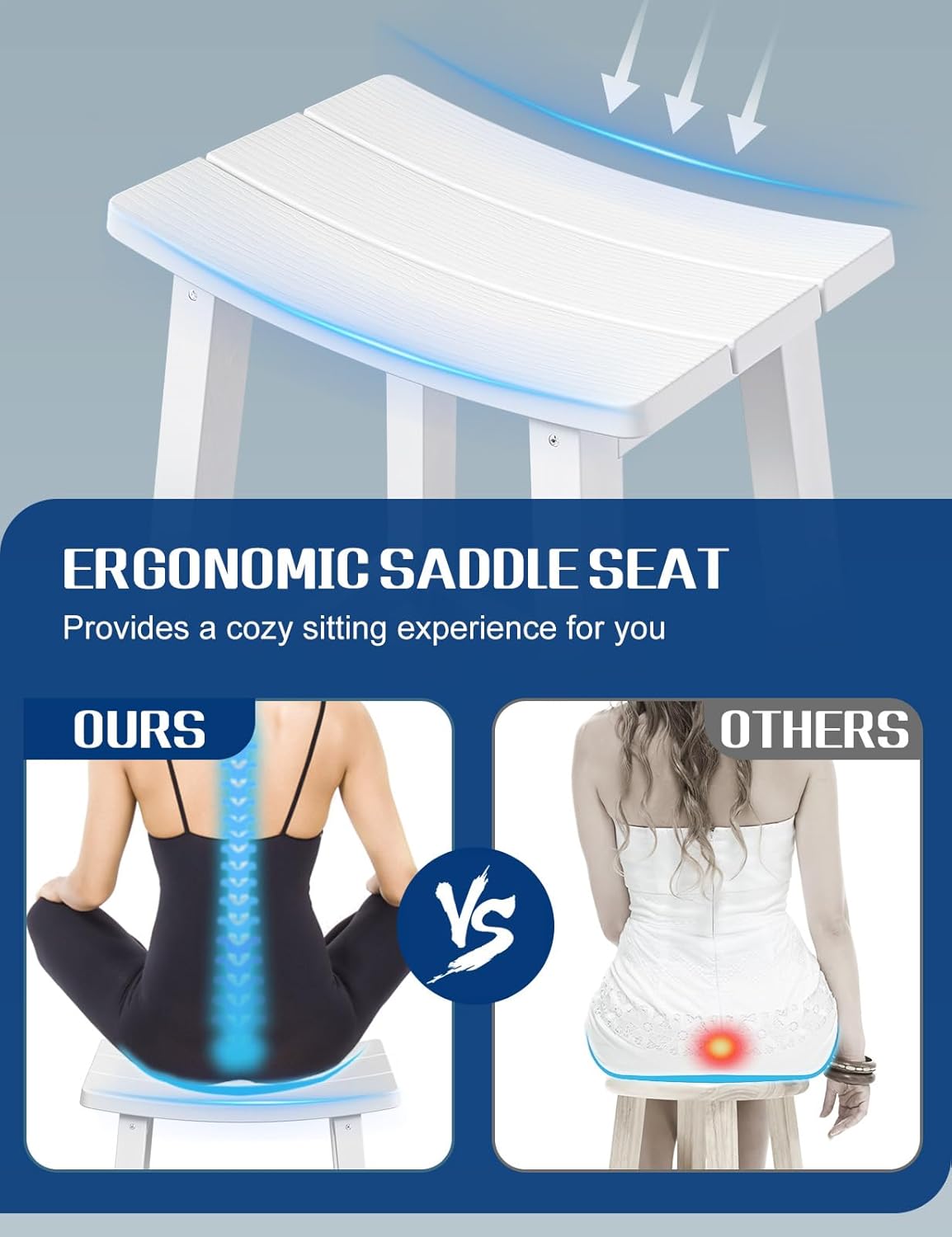 - ăWeatherproof Materialsă The bar stools made of HIPS (poly lumber), with 304 stainless screws. It's for all-weather, never rusts and moldy. It can withstand hot sun, heavy snow, salt spray and strong coastal wind.