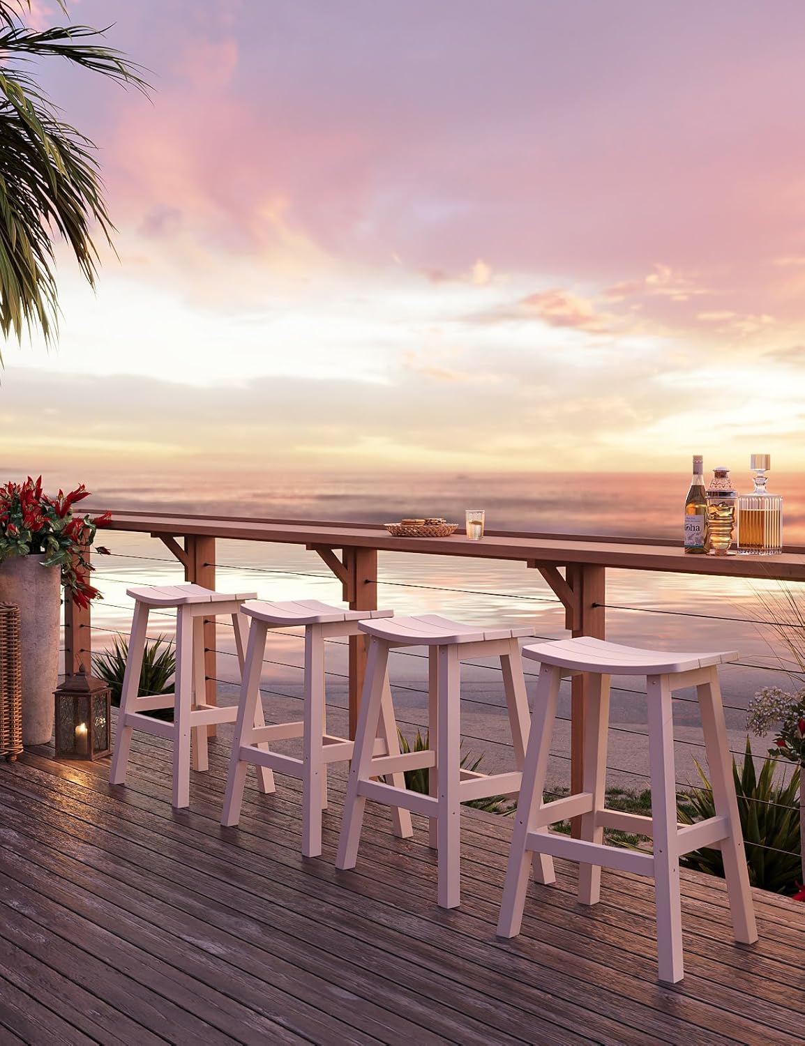 - ăWeatherproof Materialsă The bar stools made of HIPS (poly lumber), with 304 stainless screws. It's for all-weather, never rusts and moldy. It can withstand hot sun, heavy snow, salt spray and strong coastal wind.