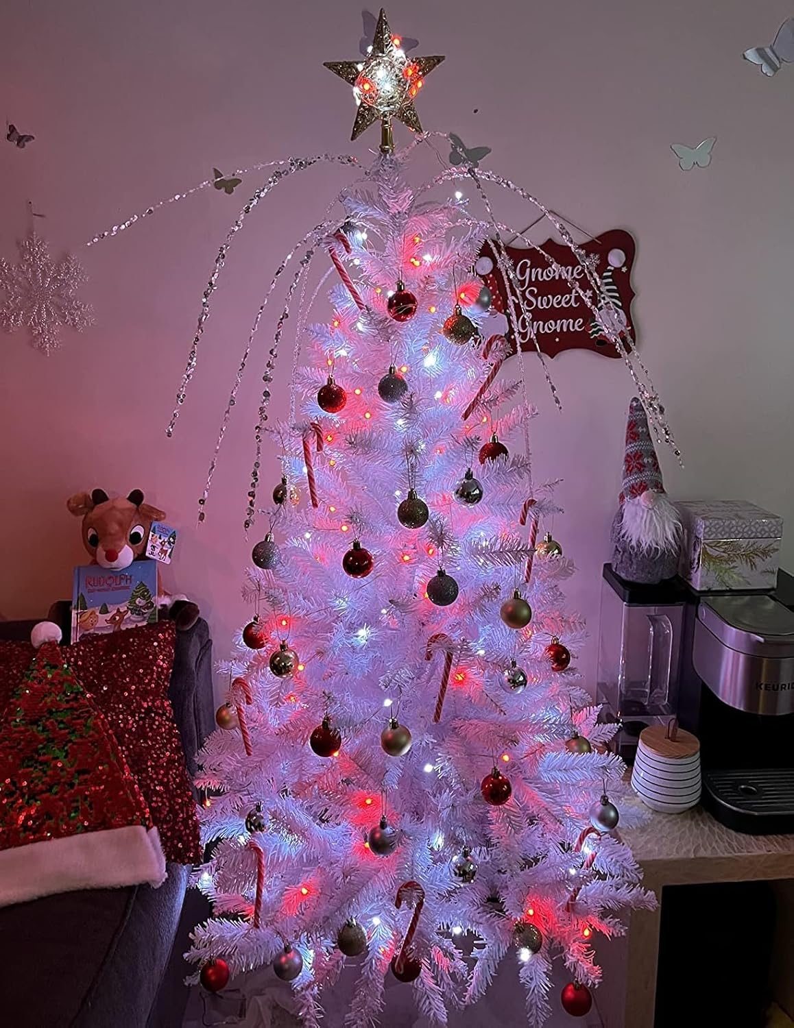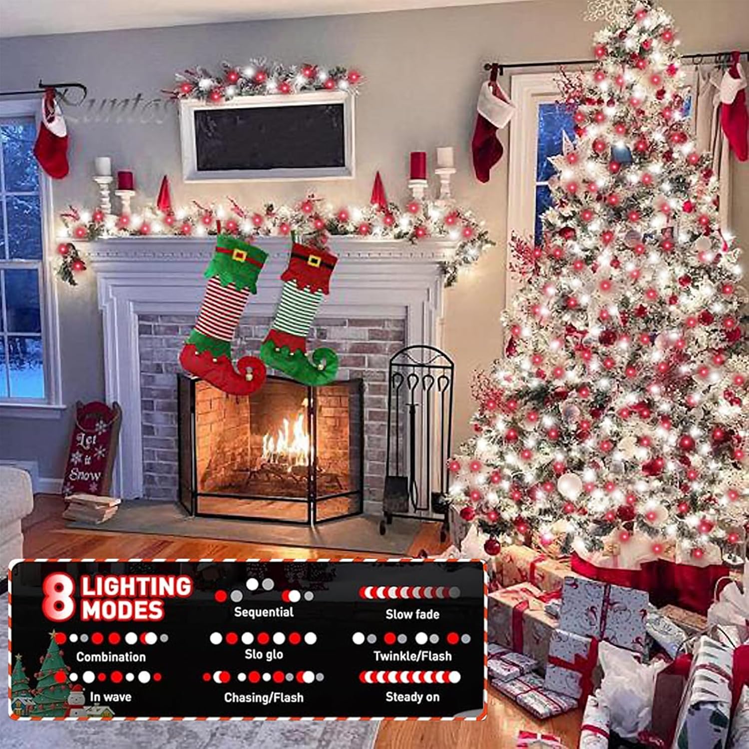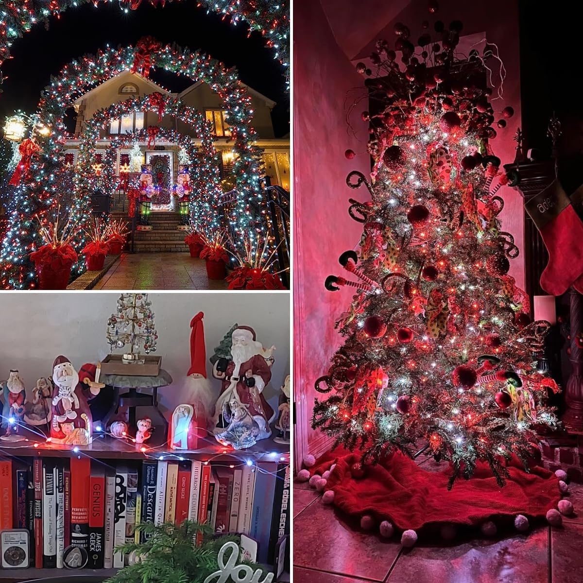 - Great for Christmas Decor:100 LED starry-style fairy lights with Red and White light accent your space with a unique, inviting glow. 33ft length is perfect to put around a garden or porch railing.The silver line design can be integrated with all kinds of scenes, more hidden, better reflect the beauty of the light.Hang these Red & White fairy lights on the Christmas tree or stick them on the wall to bring a festive atmosphere to your home. Have a warm and unforgettable Christmas with your family!