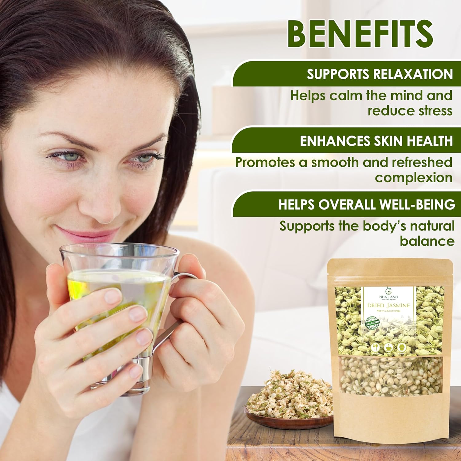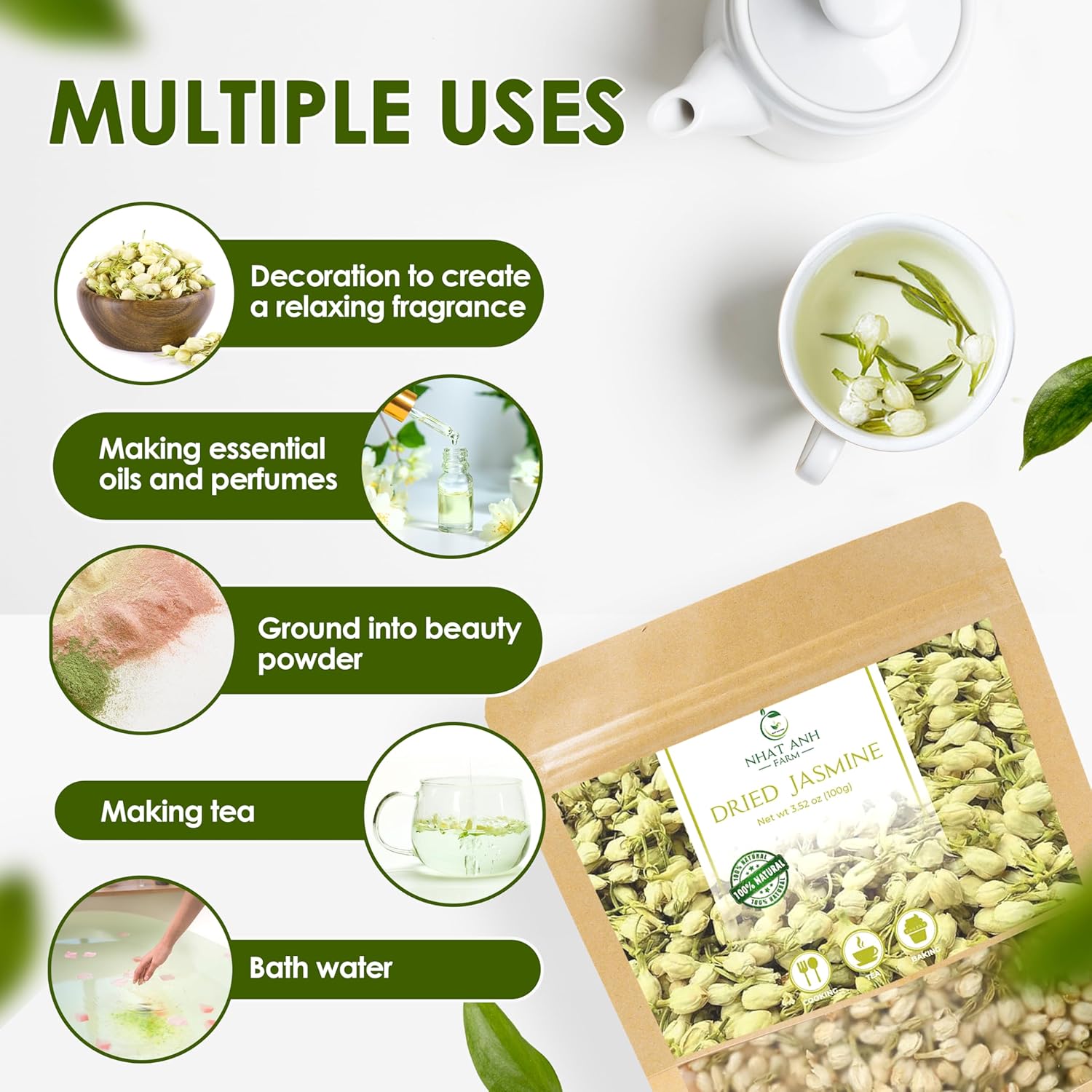 Nhat Anh Farm - Dried Jasmine Flowers - Pure Jasmine Buds 3.5oz(100g) Natural & Pure - Dried Jasmine Flowers Sugar/Caffeine/Gluten Free. Making Tea, Baking