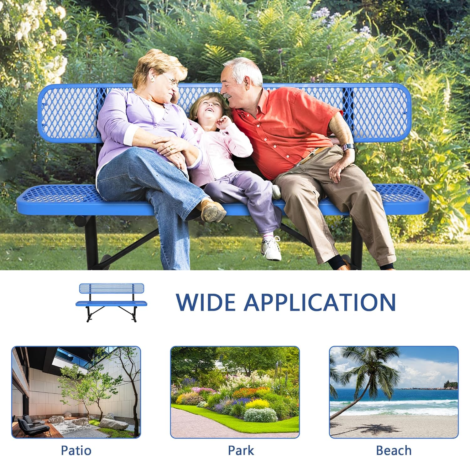 8 Feet Heavy Duty Metal Park Bench for Outside, Outdoor Steel Bench with Backrest & Portable Frame, Commercial Benches for Shopping Malls/Stores/Parks/Patios/Decks/School,Blue