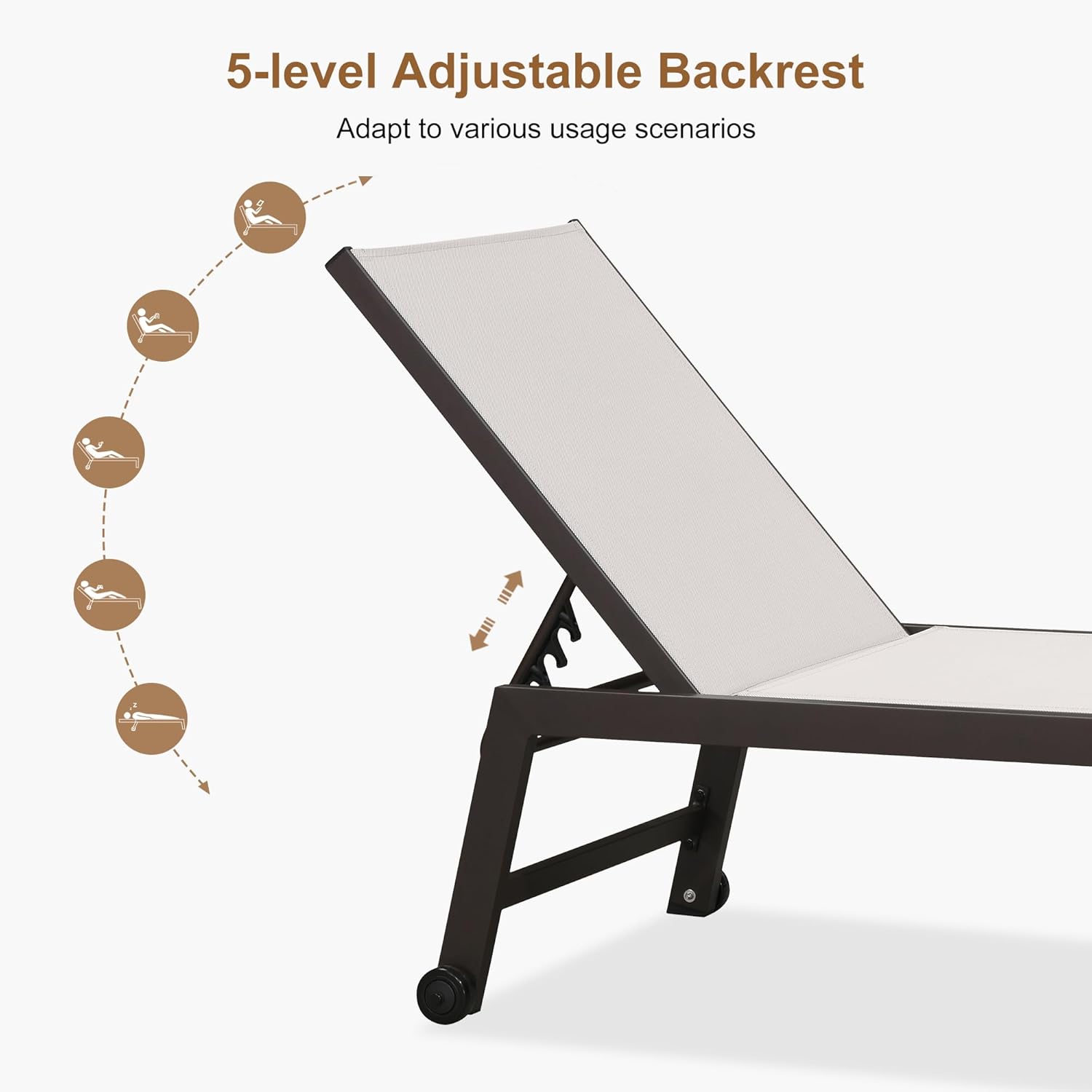 - COMFORTABLE FABRIC: This patio lounge chair features a sunbathing textilene design, providing a comfortable and relaxing lounging experience. Quick-dry and fade-resistant, perfect for poolside or patio use.