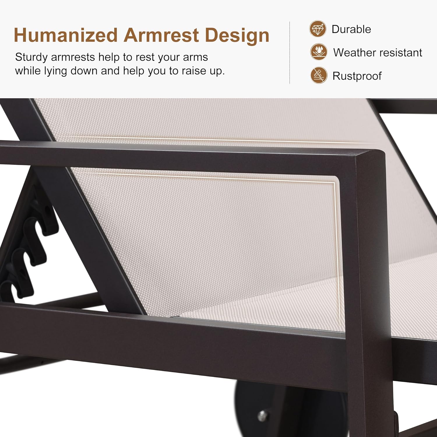 - HUMANIZED ARMREST: Feature two 20.6 "height humanized armrests, the lounge chairs for outside can relax your arms while lying down without pressure and get out of easily.