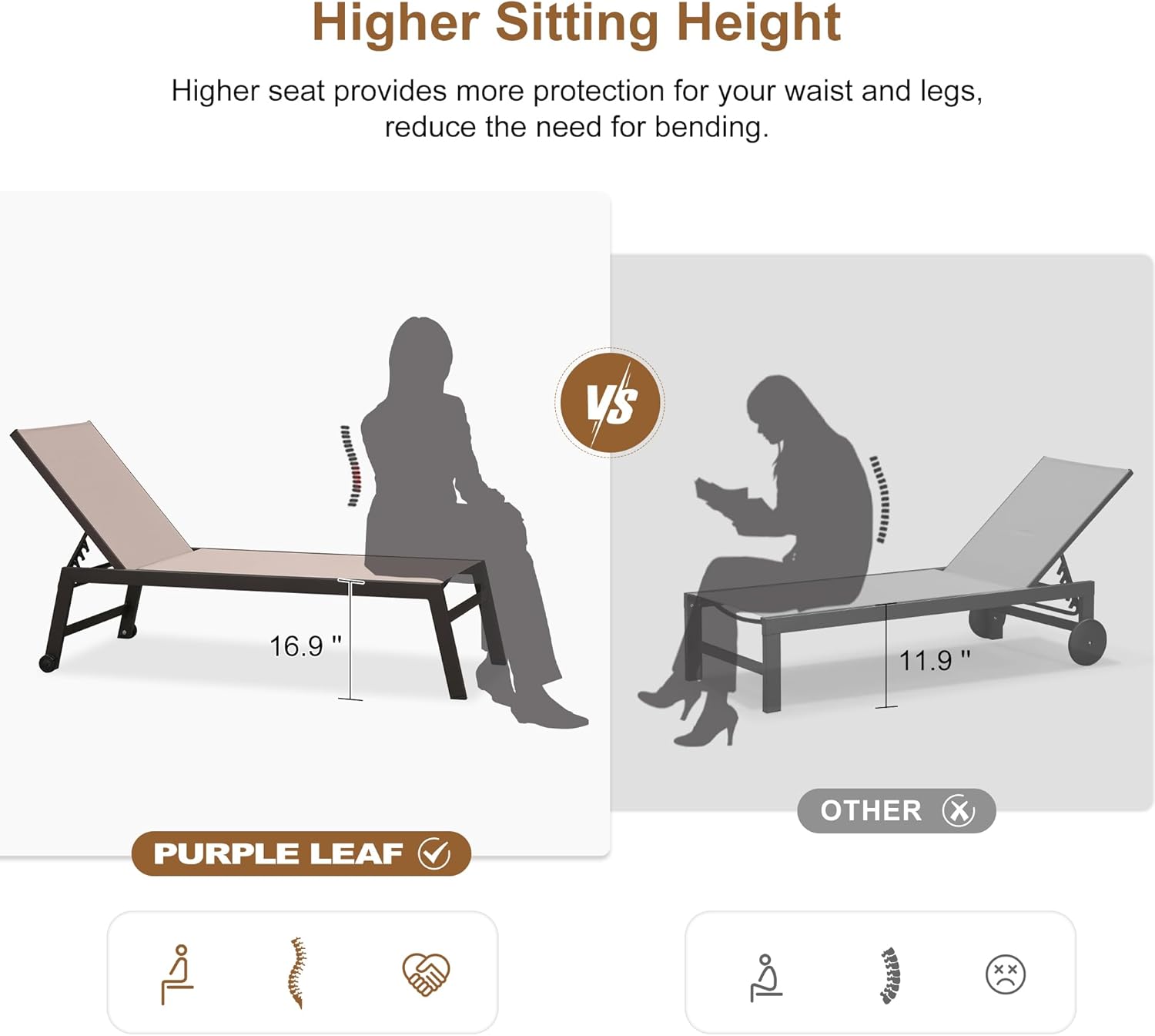 PURPLE LEAF Oversized Patio Lounge Chairs Set of 3, Reclining Pool Lounge Chairs with Side Table and Wheels for All Weather for Outdoor, Deck, Lawn, Aluminum Outside Pool, Sand Beige