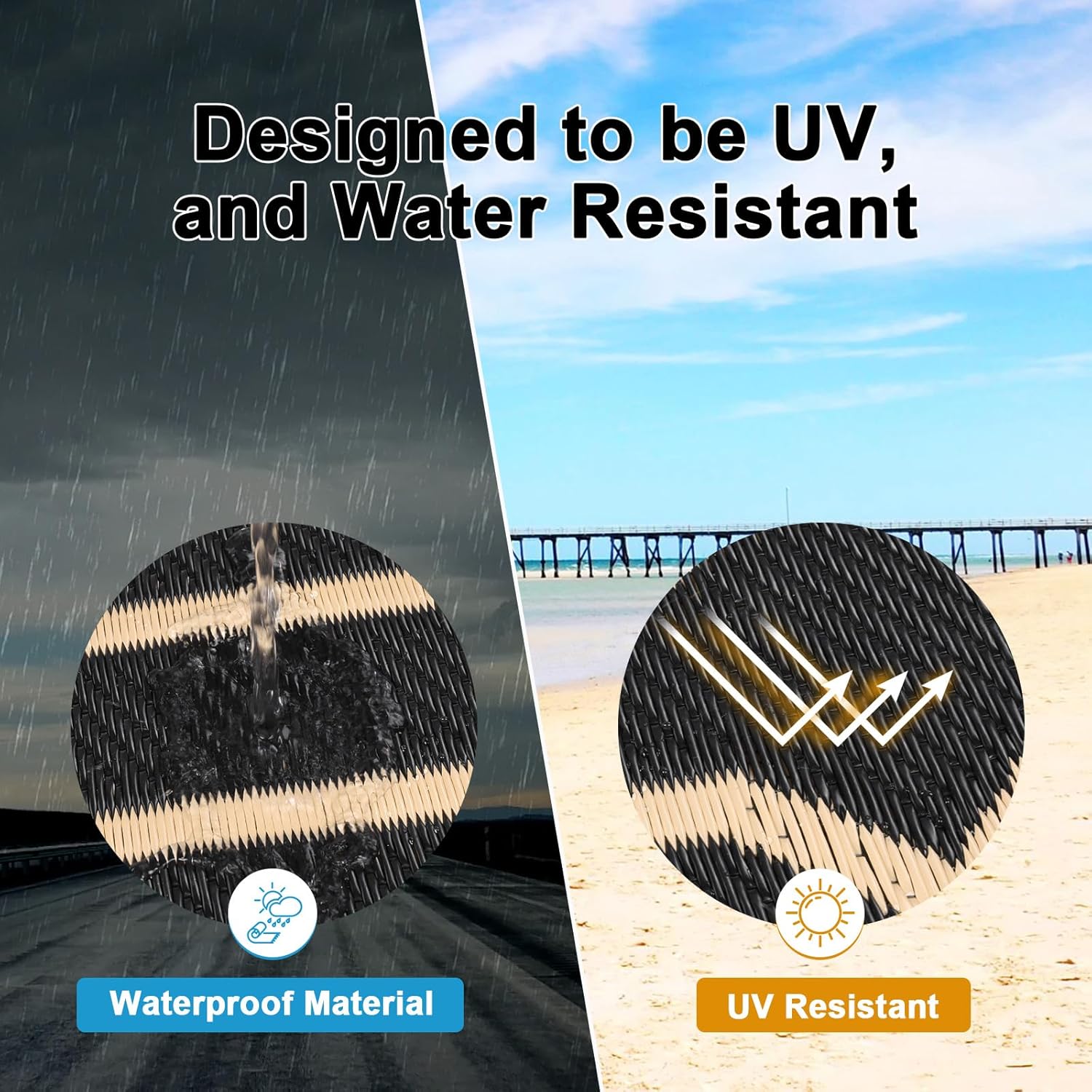 - Premium Material Outdoor Doormat: This reversible outdoor doormats are made from high quality recycled plastic straws and be woven tightly, durable enough, no fade, water resistant. It's soft and comfortable to walk on barefoot.Plus, the high-end UV coating and edge heat treatment technology prevent fading and sun damage without worrying about wear and tear.