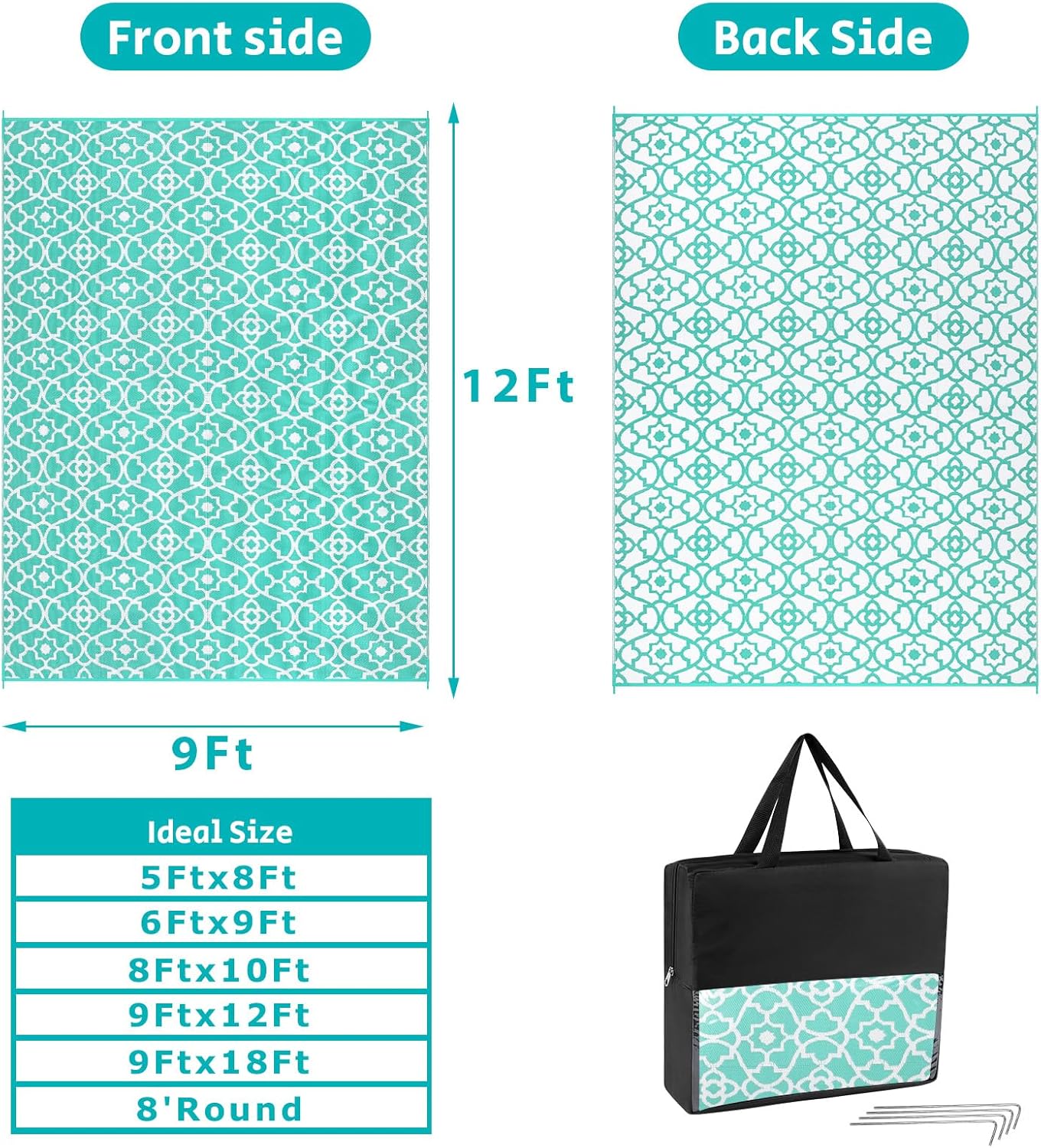 - Versatile Outdoor Carpet: The indoor outdoor plastic rugs have multiple choice in different colors(4'x6',5'x8',6'x9',8'x10',9'x12',9'x18',8'round), is ideal for a variety of indoor outdoor activities,like patio mat, deck rug, garden rug, beach mat, picnic mat, BBQ party mat, rv camping rug,pool rug,outdoor doormat,garage rug,front door mat,allowing you to have plenty of imaginable space for more fun.