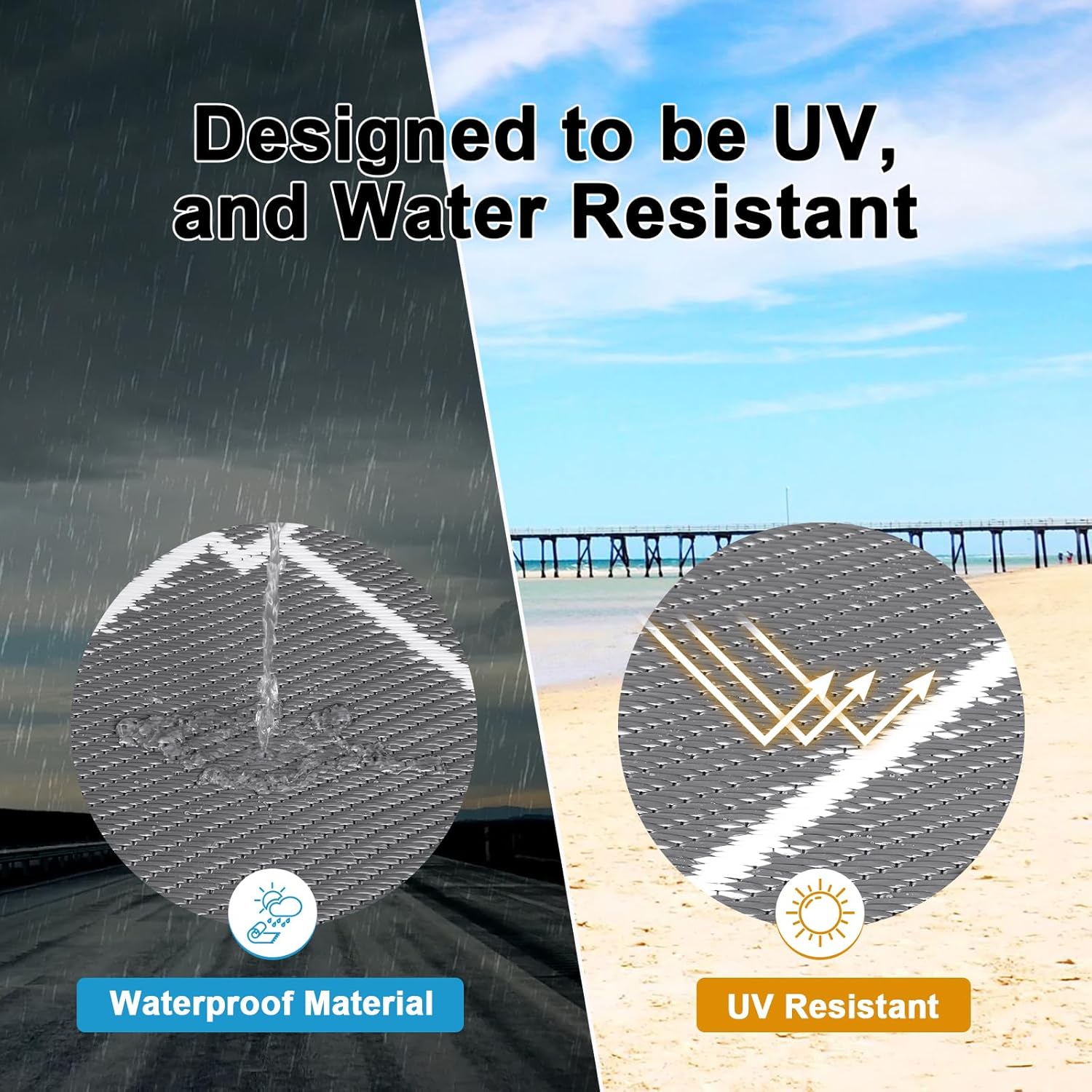 - Premium Material Outdoor Doormat: This reversible outdoor doormats are made from high quality recycled plastic straws and be woven tightly, durable enough, no fade, water resistant. It's soft and comfortable to walk on barefoot.Plus, the high-end UV coating and edge heat treatment technology prevent fading and sun damage without worrying about wear and tear.