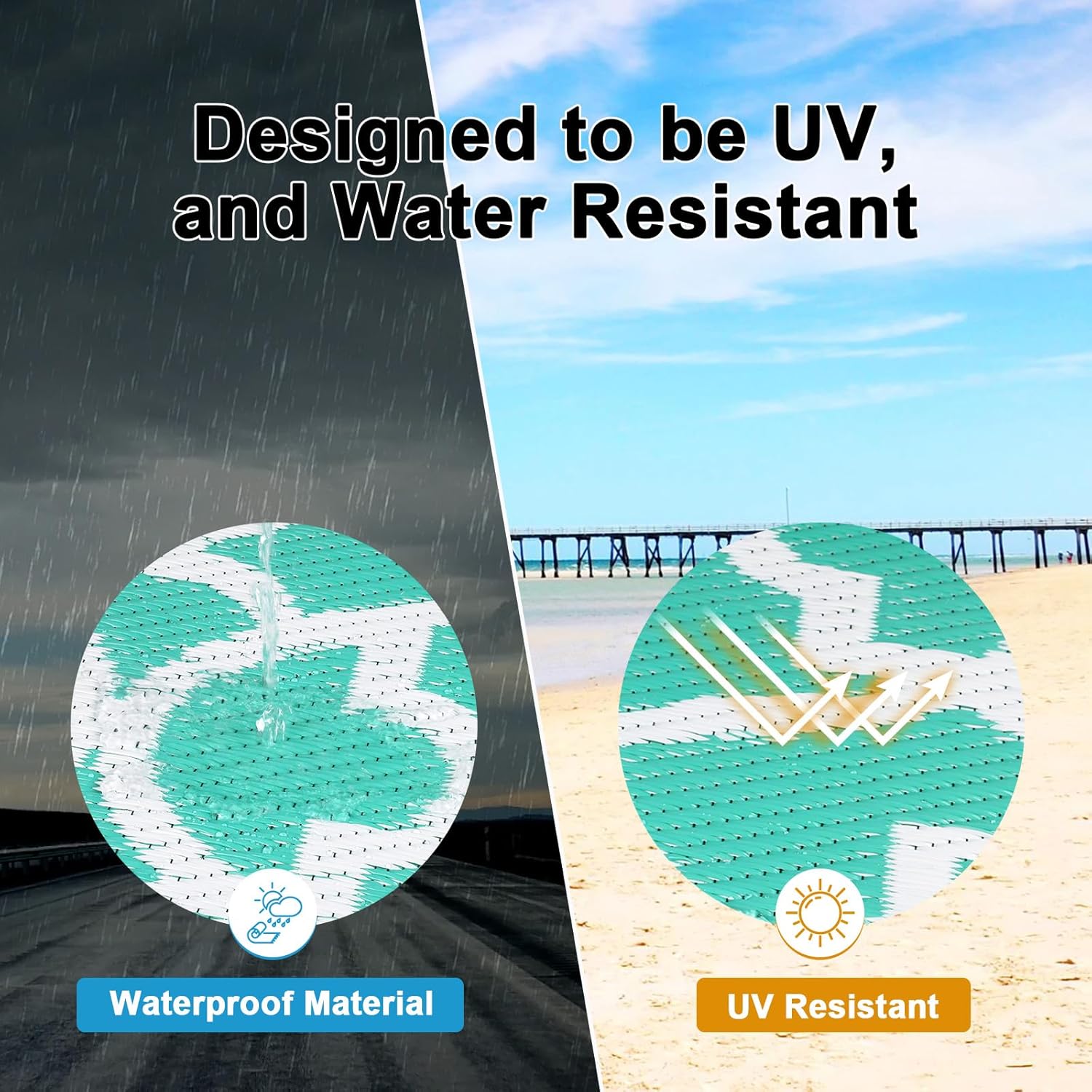 • Premium Material Outdoor Doormat: This reversible outdoor doormats are made from high quality recycled plastic straws and be woven tightly, durable enough, no fade, water resistant. It's soft and comfortable to walk on barefoot.Plus, the high-end UV coating and edge heat treatment technology prevent fading and sun damage without worrying about wear and tear.