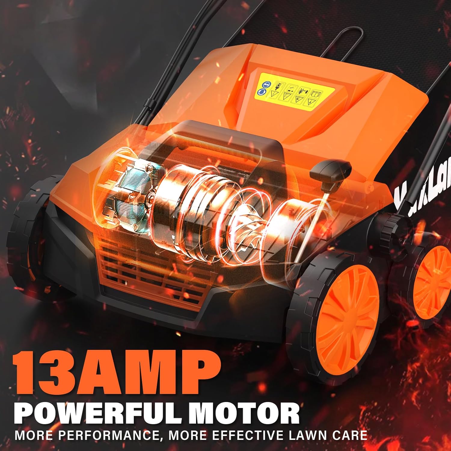 - Powerful Performance: The MAXLANDER 15-inch Dethatcher features a robust 13-amp copper motor that spins at an impressive 3,500 RPM, effortlessly raking a 15-inch wide path. Say goodbye to dead thatch and hello to a healthier lawn! (Note: This dethatcher is not a lawnmower but an efficient solution for removing the layer of debris and dead grass from your lawn and keeping it healthy.)