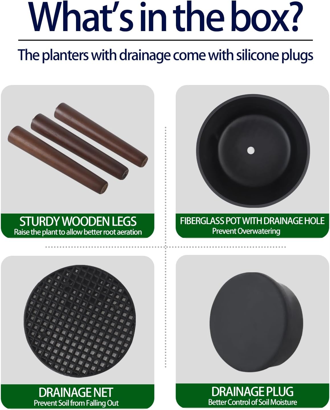 - 【Plant Pot with Wooden Legs】Placing these plant pots with wooden legs brings a natural ambiance to any room. The elevated legs lift the planters, complementing your favorite plants, and creating a well-organized and vibrant atmosphere. Perfect for showcasing your favorite plants in the living room, bedroom, bathroom, dining room, hallway, courtyard, garden, or office.
