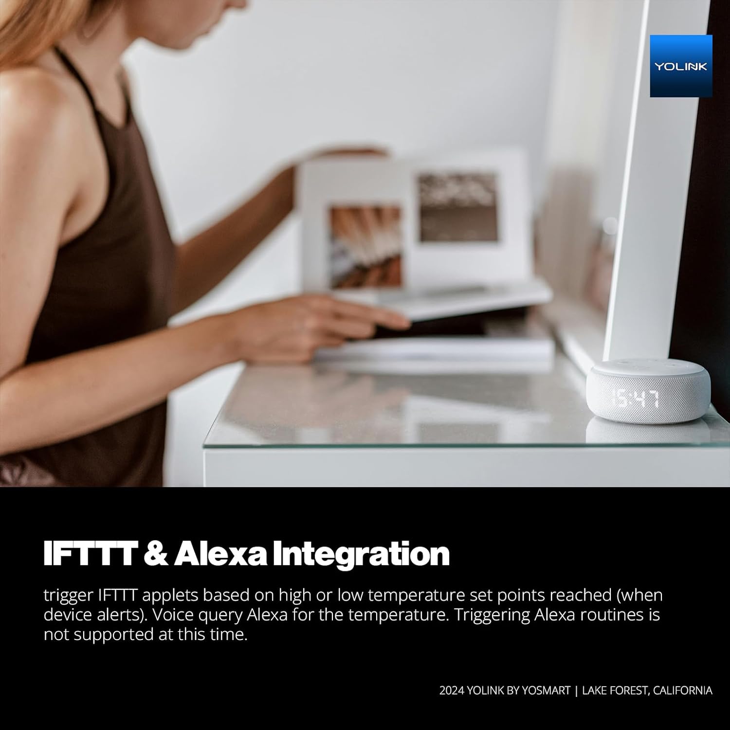 - IFTTT & Alexa Integration: trigger IFTTT applets based on high or low temperature set points reached (when device alerts). Voice query Alexa for the temperature. Triggering Alexa routines is not supported at this time.
