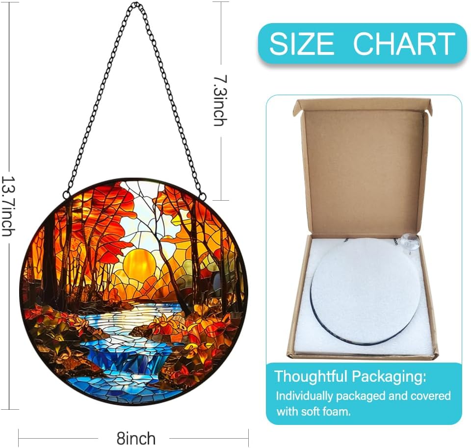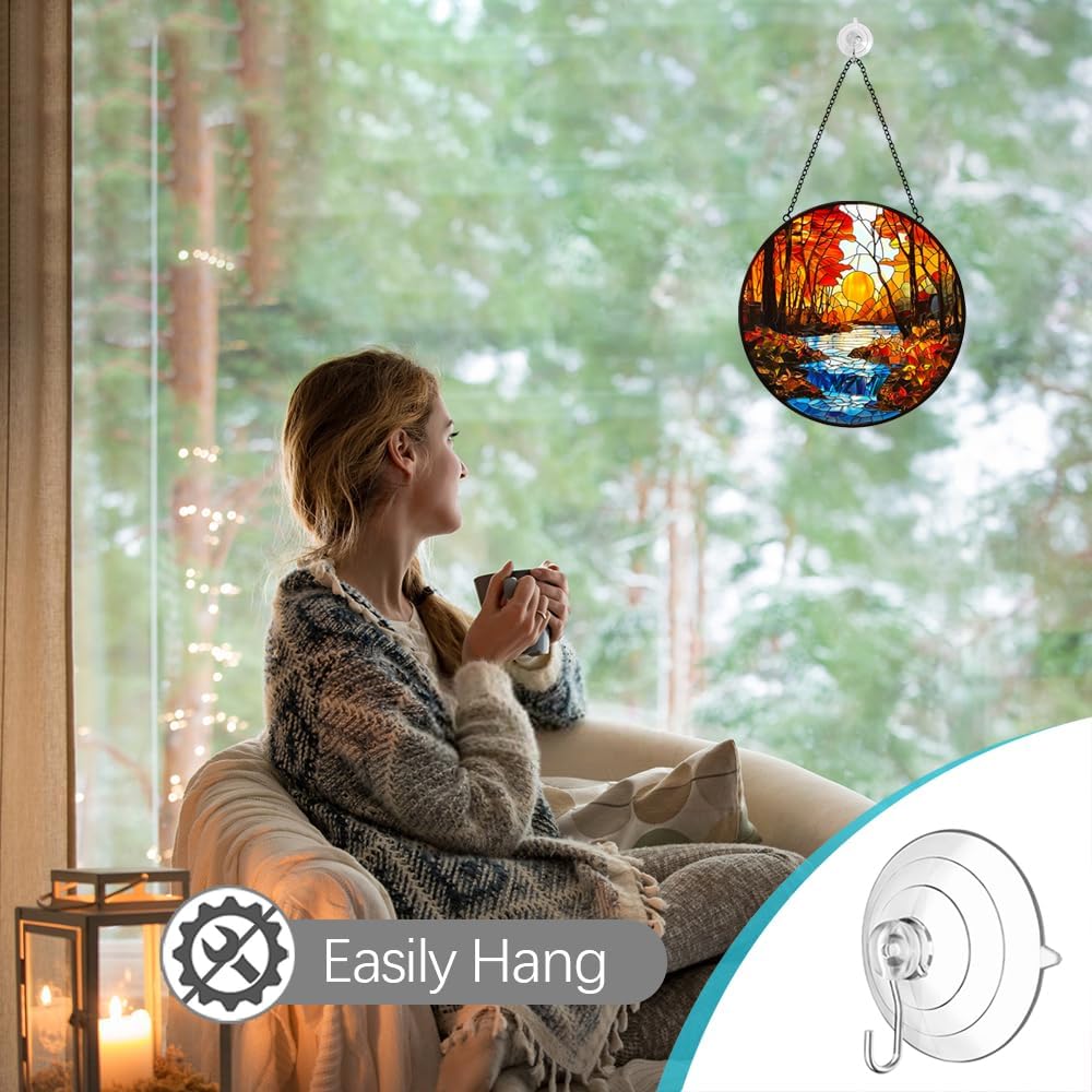 - Easy to Hang Window Suncatcher: Fall decor sunset sun catcher package comes with a suction cup hook and easy hanging wall art sun catcher in indoor or outdoor occasion. The suction cup provided is an upgraded version, which is transparent almost invisable and abolutely blend our decoration style and eaily reuse in other place, it also comes with an a metal chain for quick and easy hanging