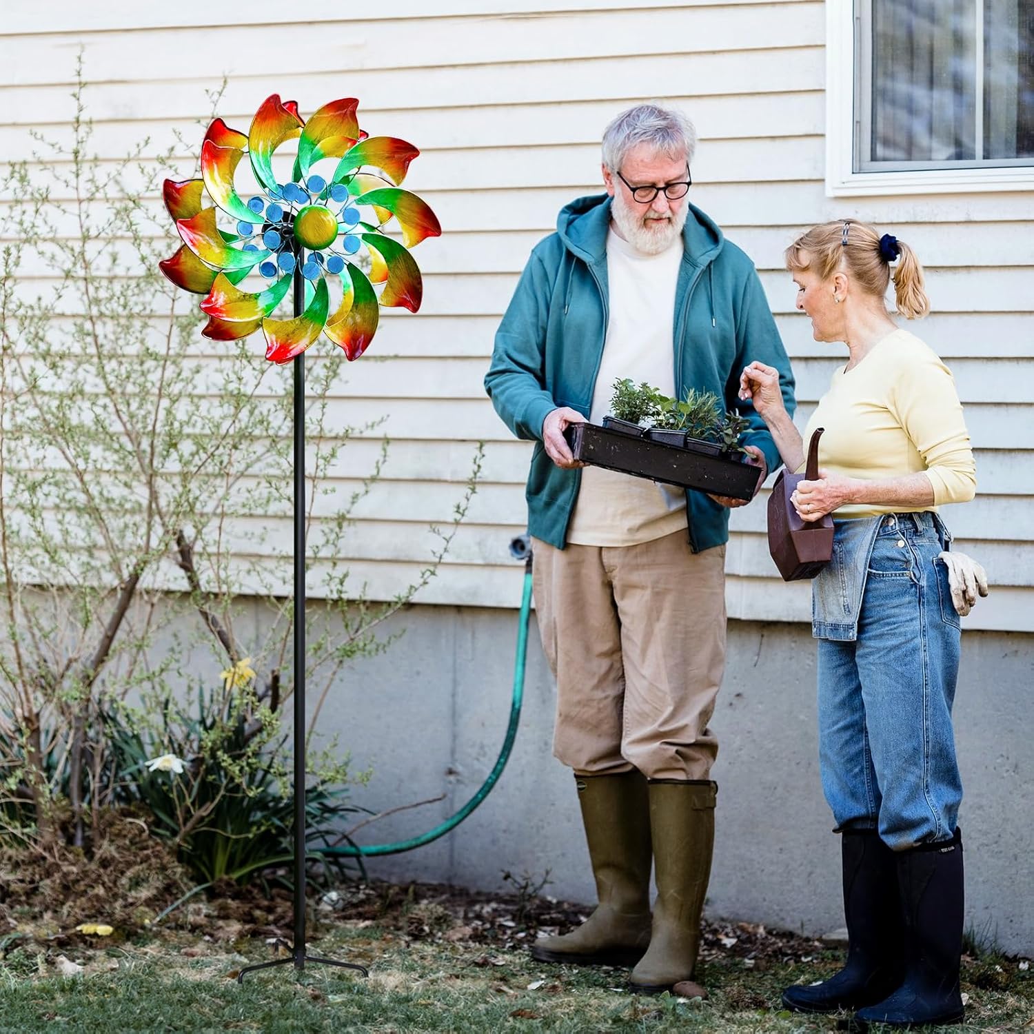 - Spinning in Garden: It's unique design and graceful rotation create a sense of tranquility and comfort when the breeze flows through. This decorative wind spinner making the entire yard more lively and engaging