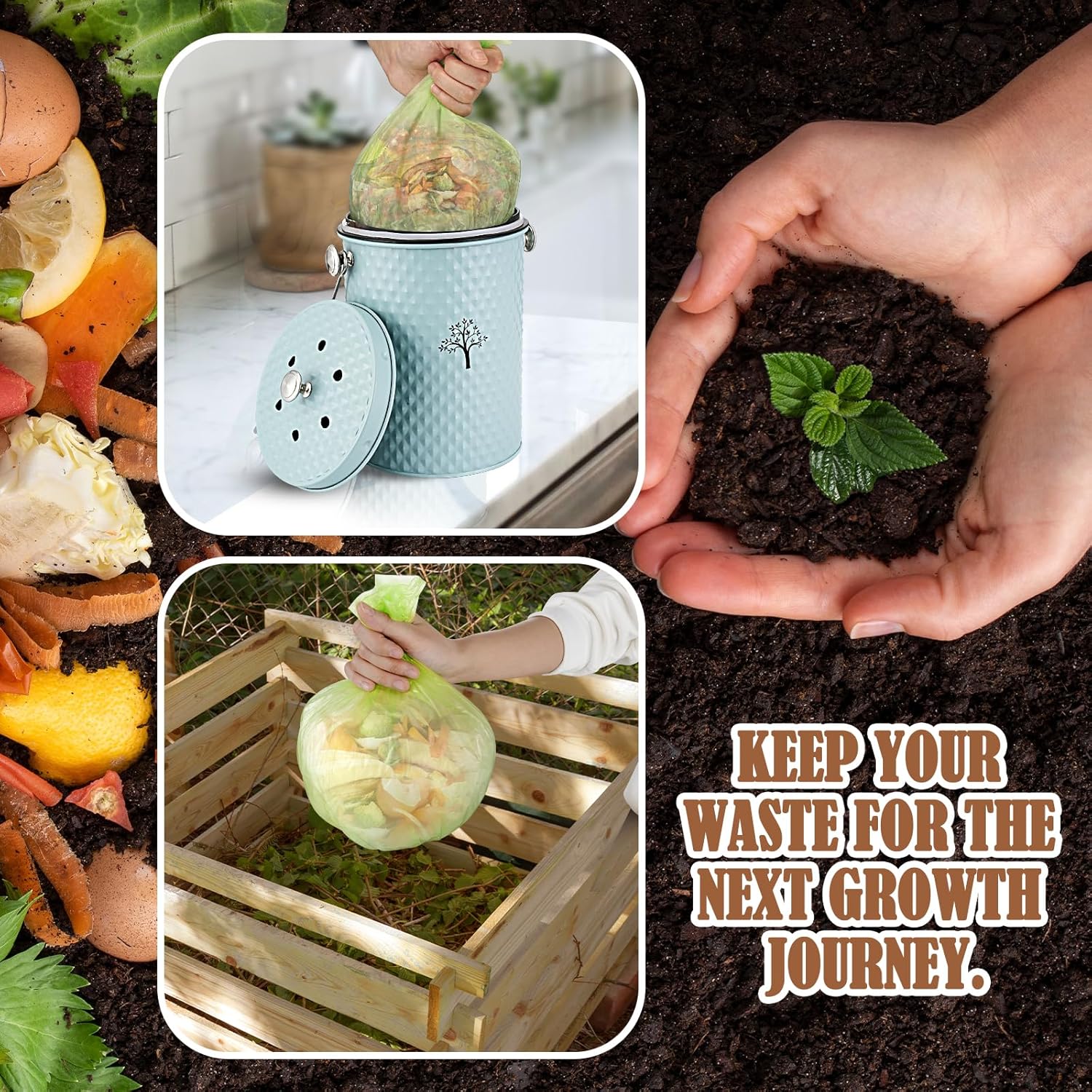 - 【ENVIRONMENTALLY FRIENDLY COMPOSTING】:The compost bin is the perfect odorless storage container for organic kitchen waste in your home.It will complement any kitchen decor.Put kitchen waste into outdoor organic fertilizer for composting and reuse. Not only does it make a stylish decoration, but it’s also functional and great for a greener environment.
