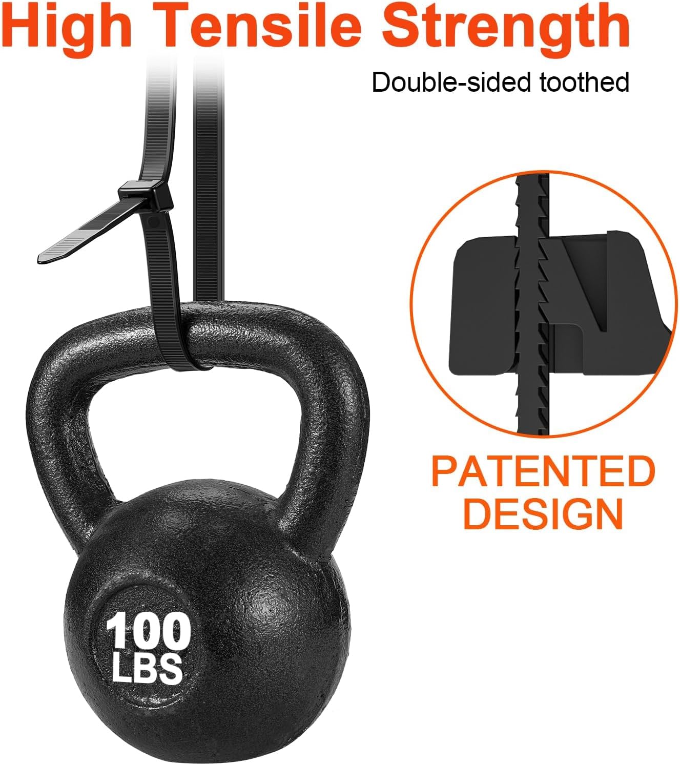 - 【100lb Tensile Strength】: The more width and Thickness, the more tensile strength. our zip ties 8 inch width is 0.19 inch(4.8mm), while industry standard is 0.14 inch(3.6mm), our zip ties 14 inch Thickness is 0.065" inch(1.65 mm), while industry standard is 0.05 inch(1.25mm),more tensile strength.