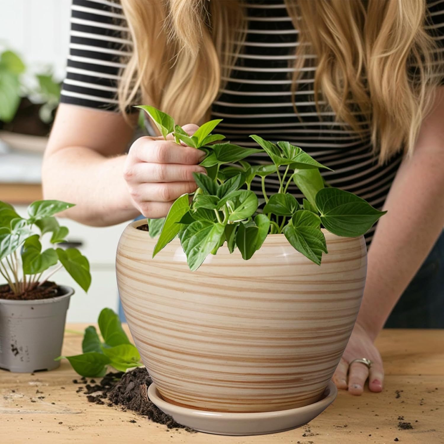 - 8 Inch Plant Pot: The ceramic planter is high-temperature fired stoneware which is durable lightweight and convenient for you to use