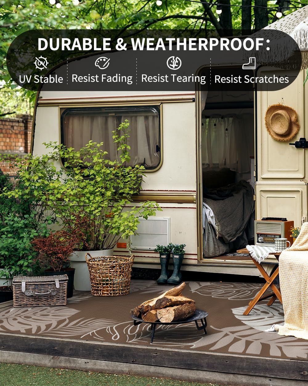 - RV traval&Camping: This camper must haves outdoor rug is ideal for picnics, gatherings, and RV trips! The lightweight outdoor camping carpet with foldable lines is easy to carry and saves space. Includes an extra carry bag and rug stakes for 6x9 ft, 8x10 ft and 9x12 ft. Grass-friendly, durable, and easy to clean, this outdoor rug enhances outdoor adventures.