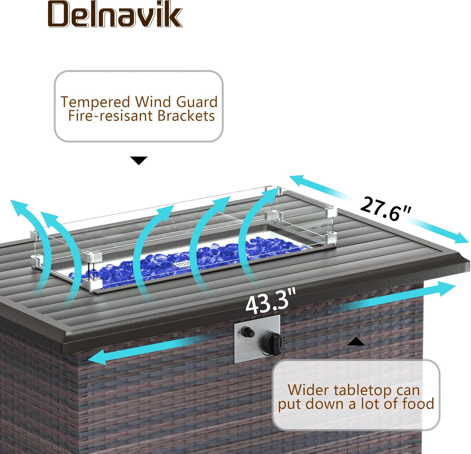 Kurapika Propane Fire Pit Table 43 Inch 55,000 BTU Auto-Ignition, CSA Certification Outdoor Rattan Gas Fire Pits with Slide Out Tank Holder, Outdoor Fire Tables Wider Desktop, Windshield and Lid