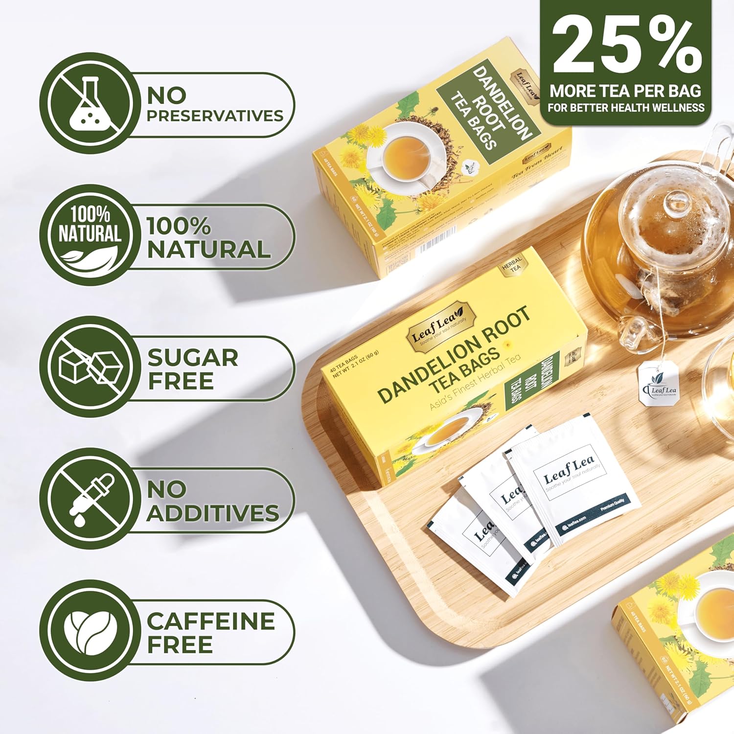 - PURE & NATURAL DANDELION ROOT: LeafLea brings you the finest dandelion root tea bags, made with 100% natural ingredients. Grown with non-pesticide or chemical-free, these dandelion root tea bags provide a safe and healthy tea experience, perfect for your well-being.