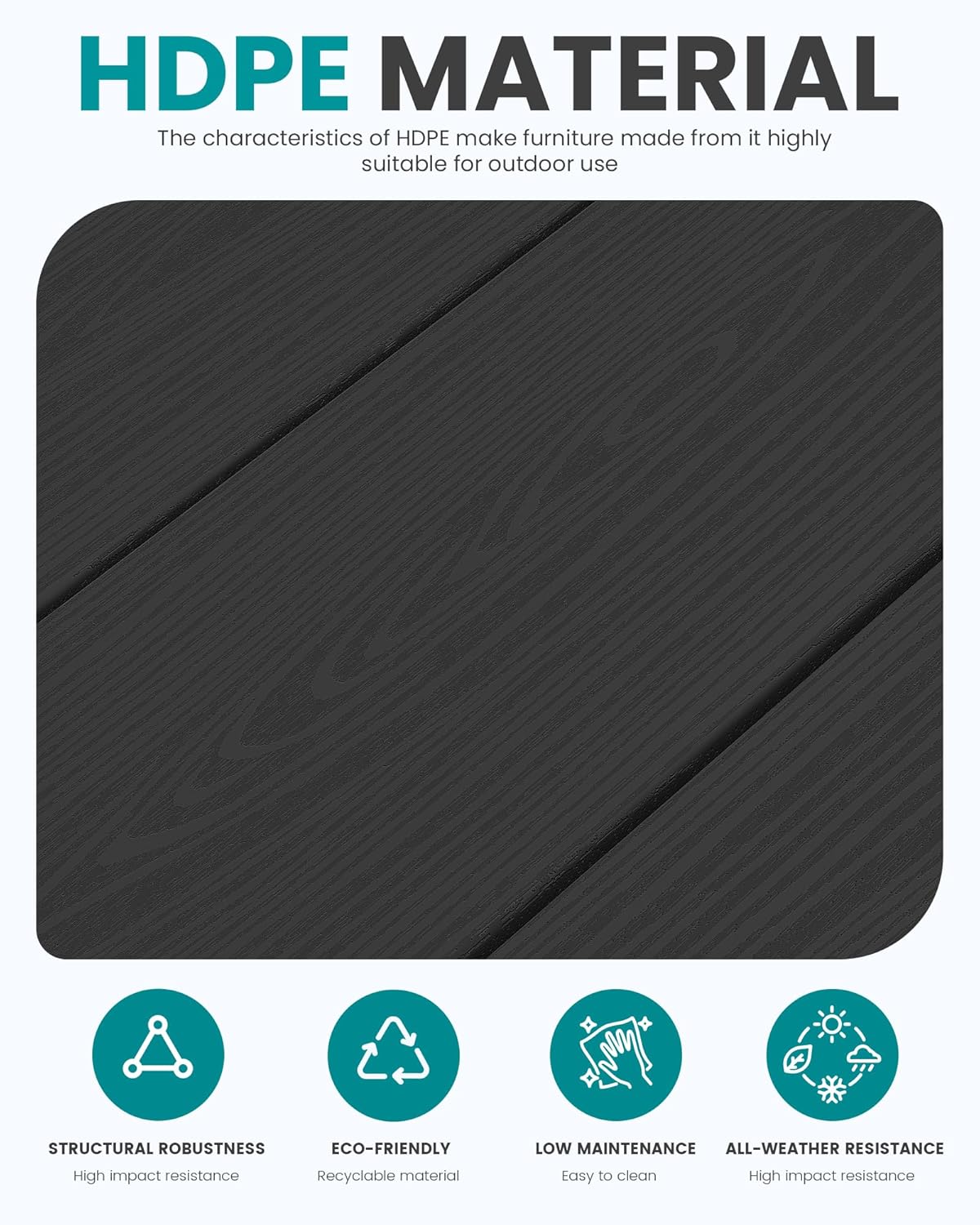 - Classic Wood-like Surface: The surface of the patio set is designed with high imitation wood grain, which has the natural beauty of wood and the durability and easy maintenance of modern materials. Whether it is placed in the courtyard, balcony, or indoor living room or study, it can add an elegant and natural flavor to your living environment.