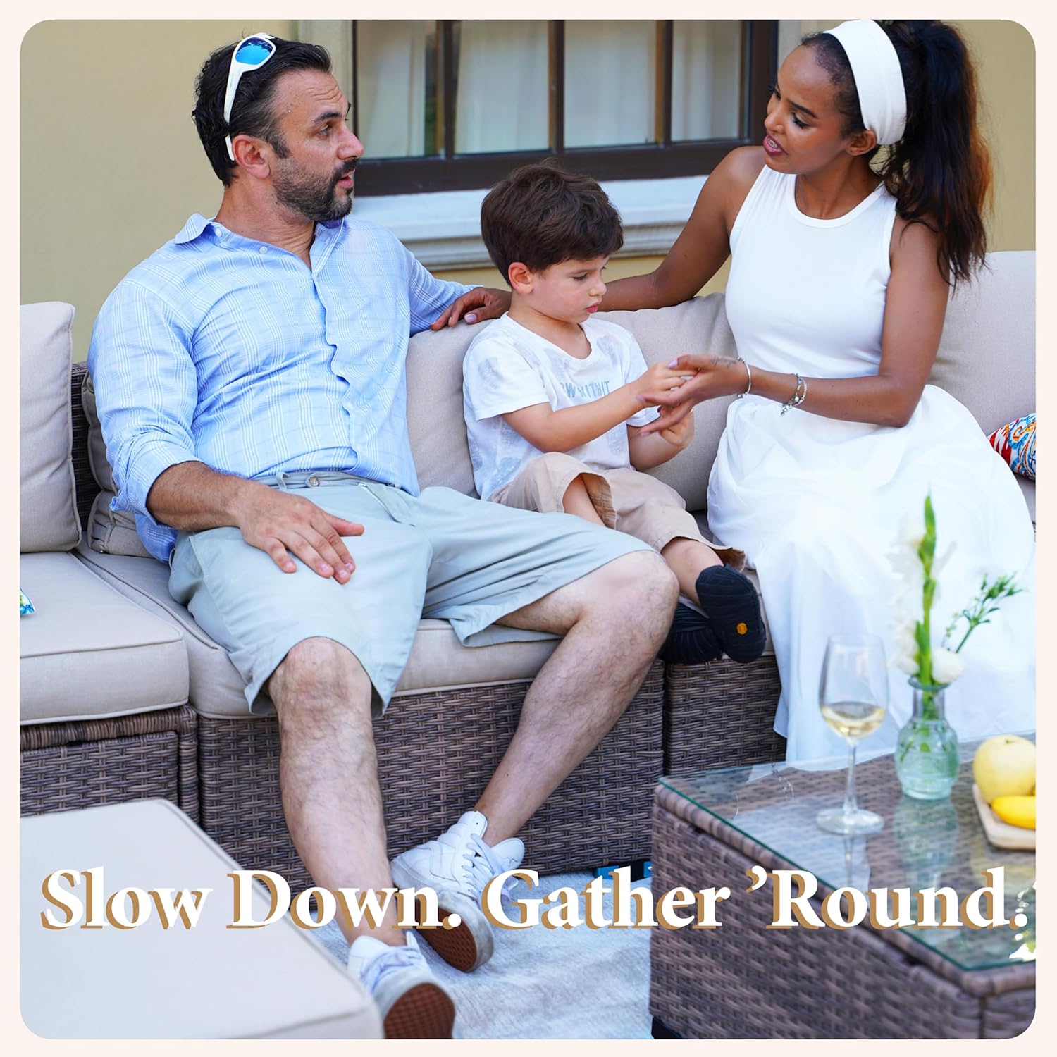 - Modular Sectional Conversation Sofa This rattan patio furniture set features a modular design that allows free combination. This patio furniture set is suitable for various scenes; You can enjoy leisure time with your family and friends in your garden, patio or backyard