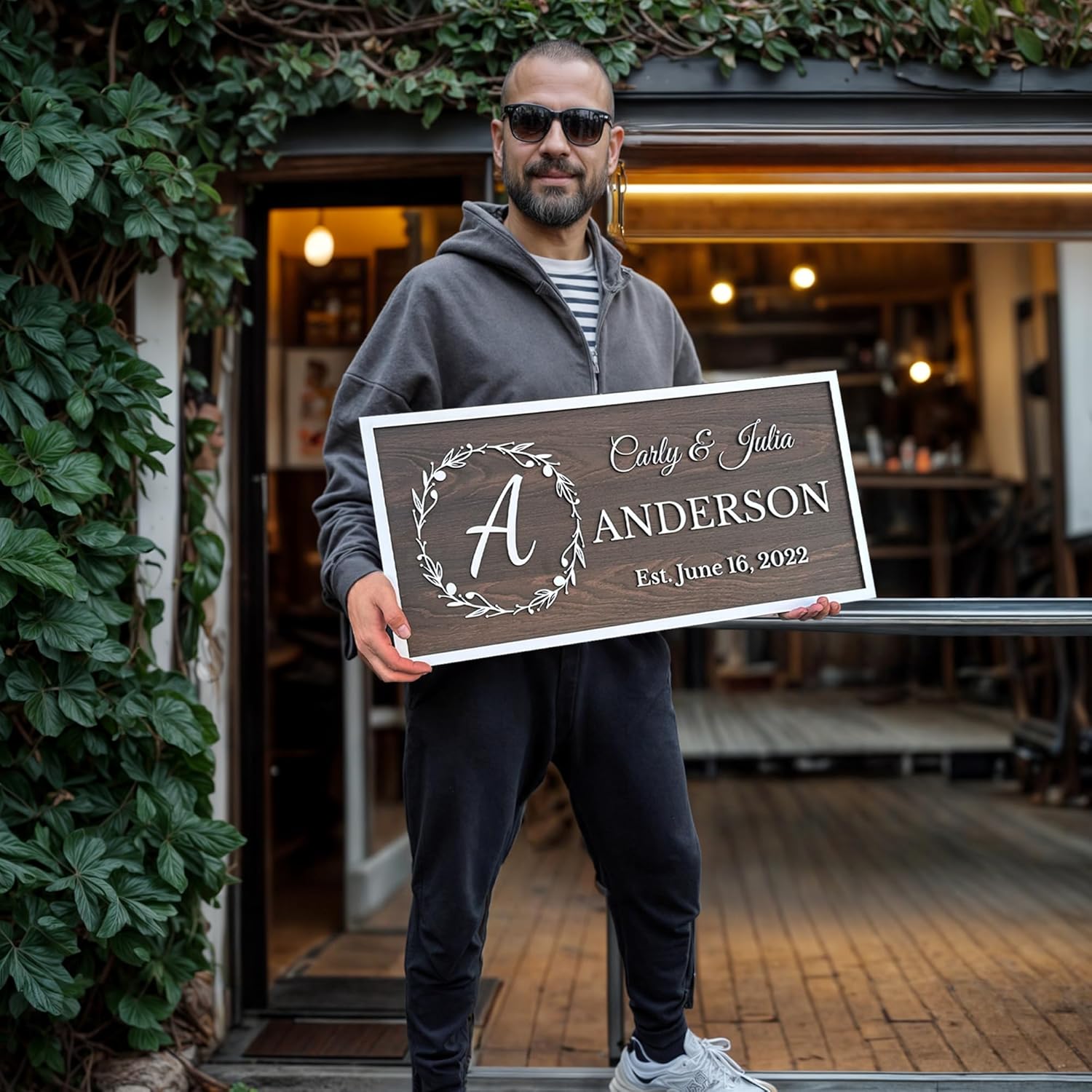 Personalized Wooden Monogram Family Name Sign with Couples Name, Custom Gift For Wife, Last Name Plaque with Initial & Established Date, Unique Wedding Gift