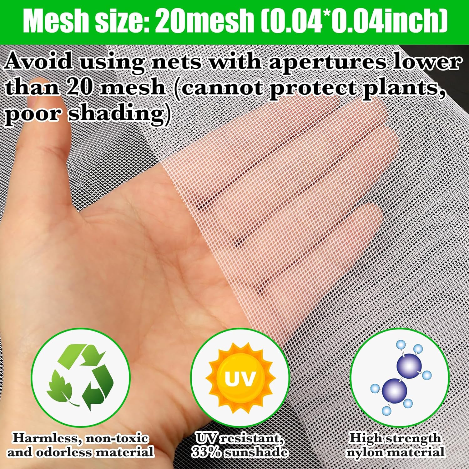 - Packaging and size: You will receive a large white mesh barrier measuring about 9.8 x 32.8ft, with a very dense mesh garden mesh pest barrier that can protect your garden effectively