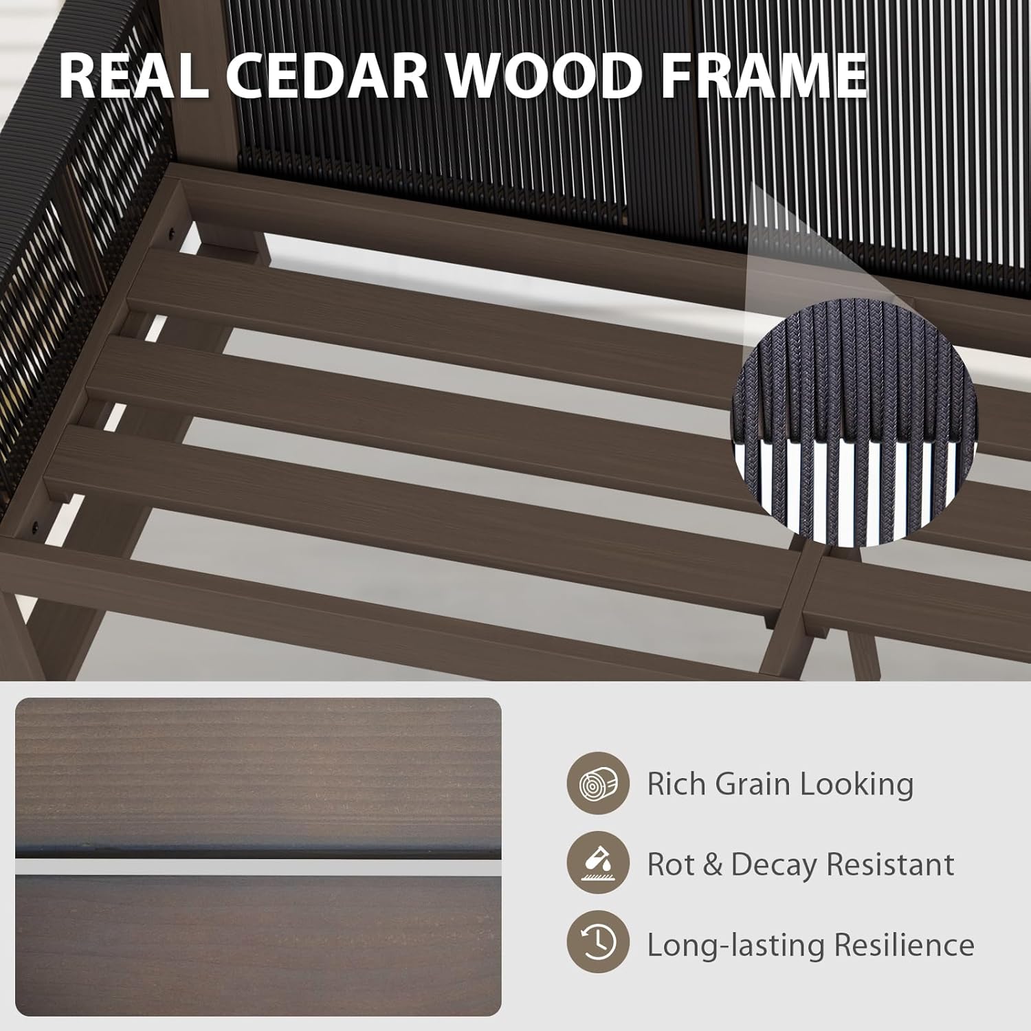 - PREMIUM NATURAL CEDAR WOOD: Crafted with natural cedar wood, this patio furniture set is the perfect blend of strength and style, adding a rustic charm to any outdoor setting. Cedarβs durability makes it resistant to rot, decay, and insect damage, ensuring long-lasting resilience and beauty.