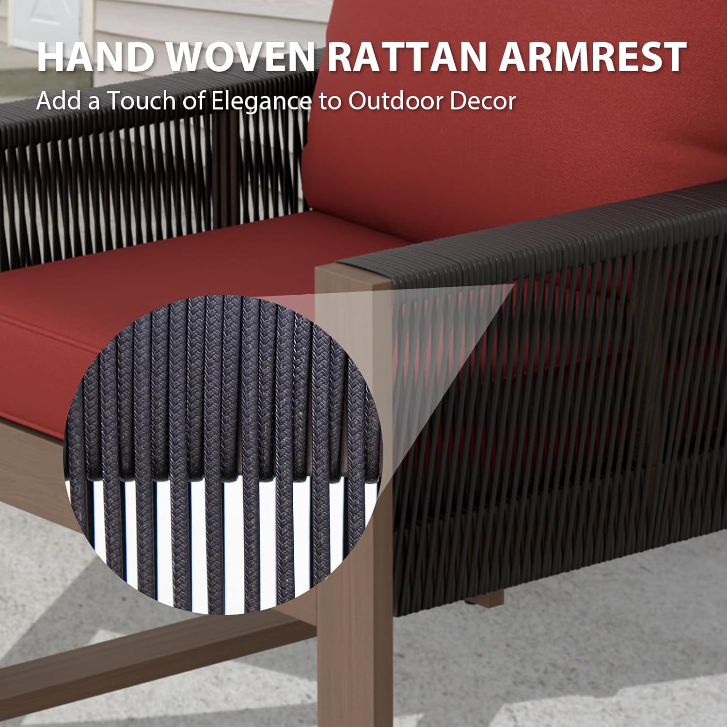 EAGLE PEAK Natural Wood Outdoor Patio Furniture, Cedar Furniture, Conversation Set, Outdoor Seating for Deck Patio Porch, Sofa 2 Chairs, Coffee Table & Side Table, 5 Pieces, Brown/Red