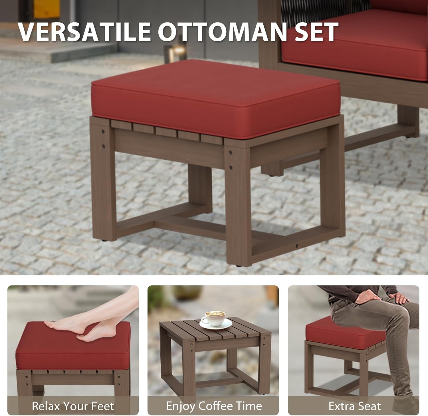 EAGLE PEAK Natural Wood Outdoor Patio Furniture, Cedar Furniture, Conversation Set, Outdoor Seating for Deck Patio Porch, Sofa 2 Chairs 2 Ottomans & Side Table, 6 Pieces, Brown/Red