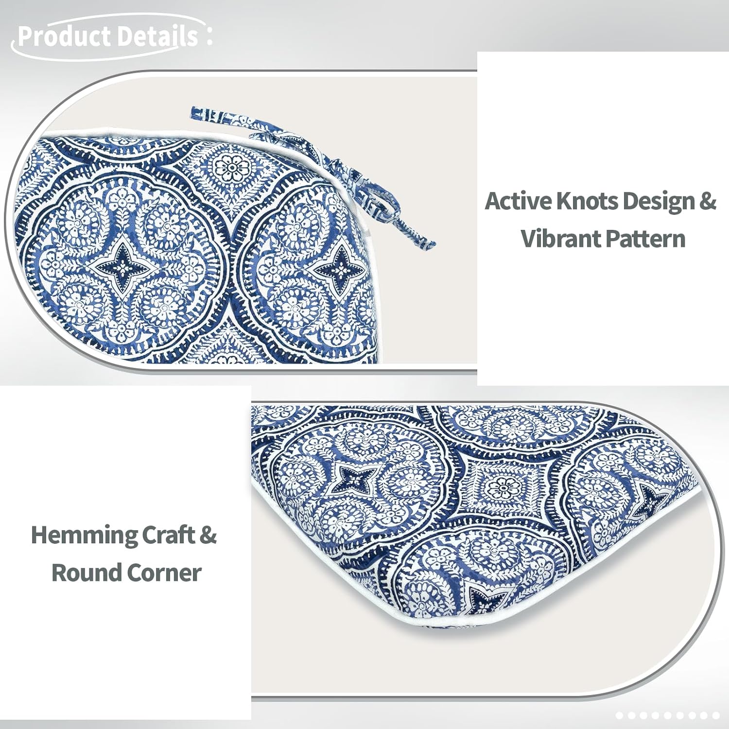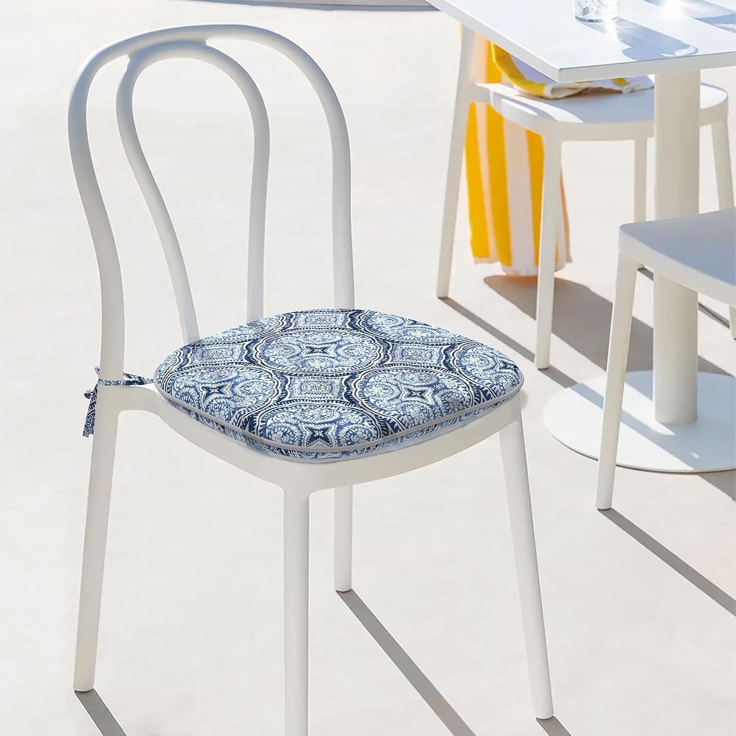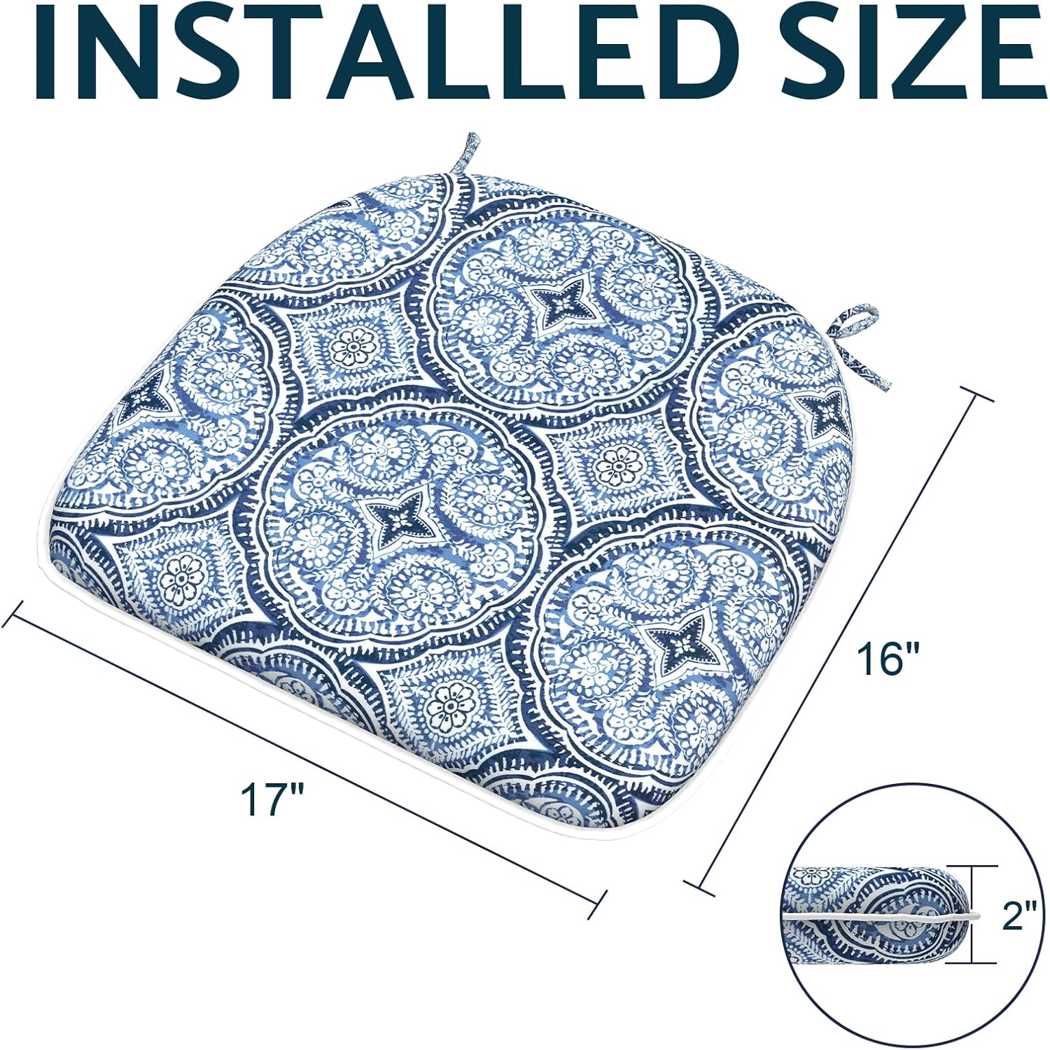 Indoor/Outdoor Chair Cushions 16x17 Inch, Patio Chair Cushions with Ties, All Weather Seat Cushions for Patio Furniture Home Garden Chair Use, Set of 2,Medallion Blue